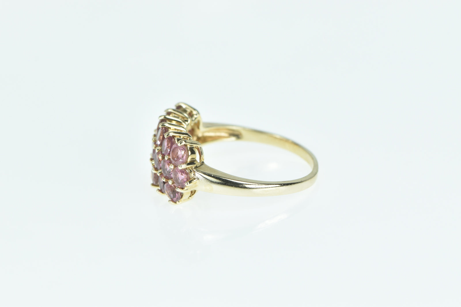 10K Pink Topaz Vintage Cluster Statement Ring Yellow Gold