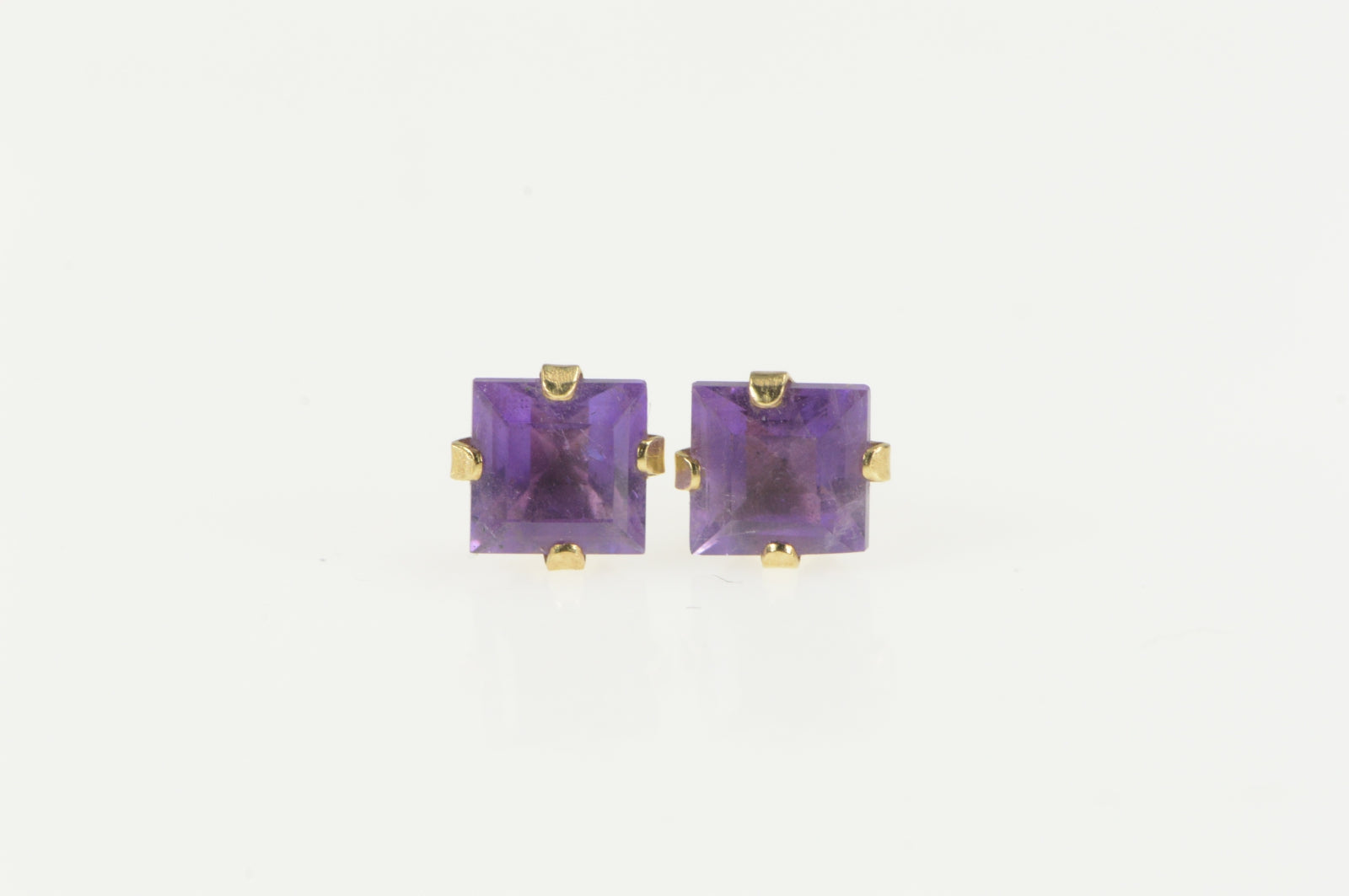 ·Item: 10K Princess Amethyst Simple Square Solitaire Stud Earrings Yellow Gold