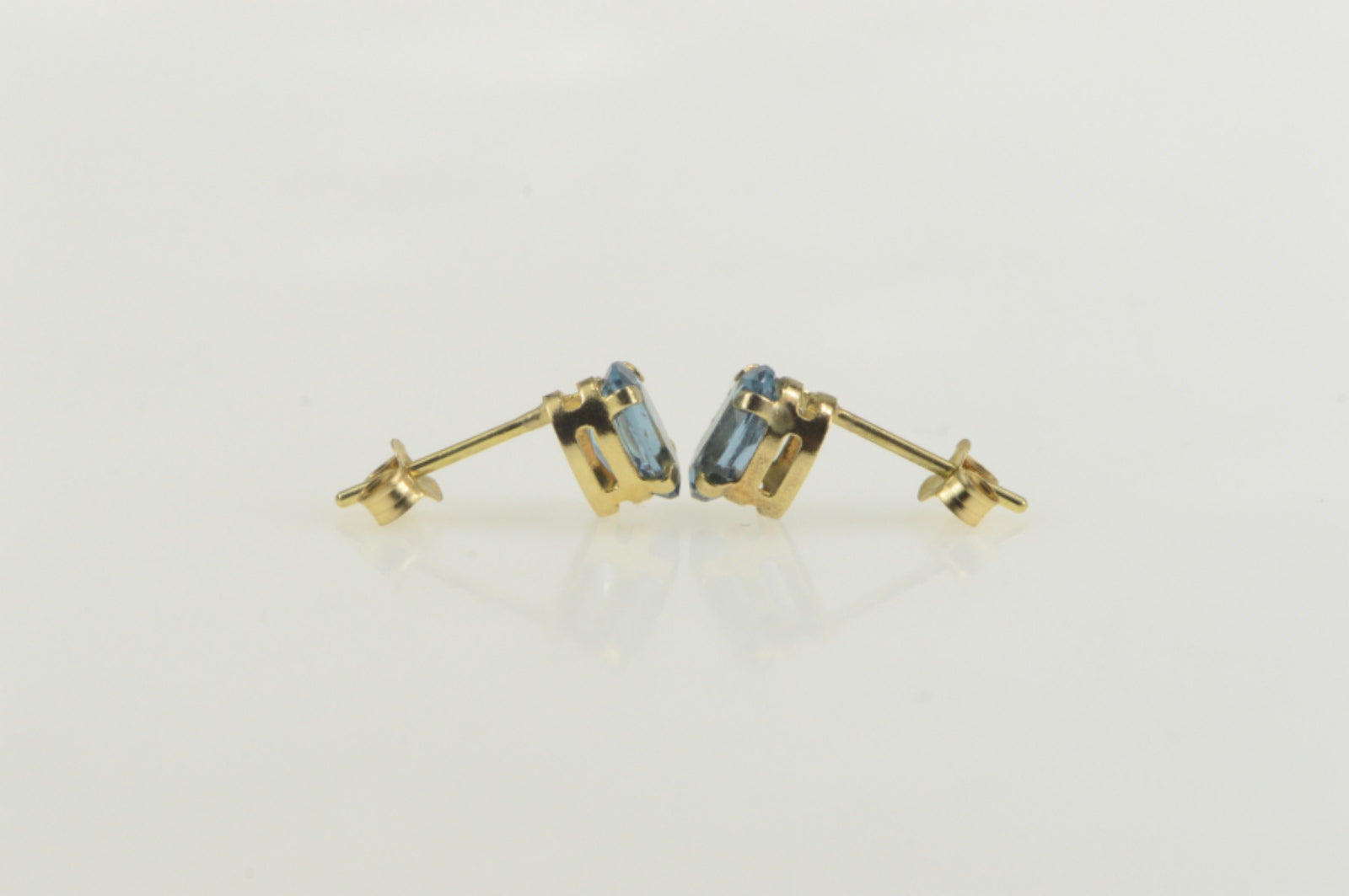 ·Item: 10K Retro Classic Blue Topaz Solitaire Stud Earrings Yellow Gold