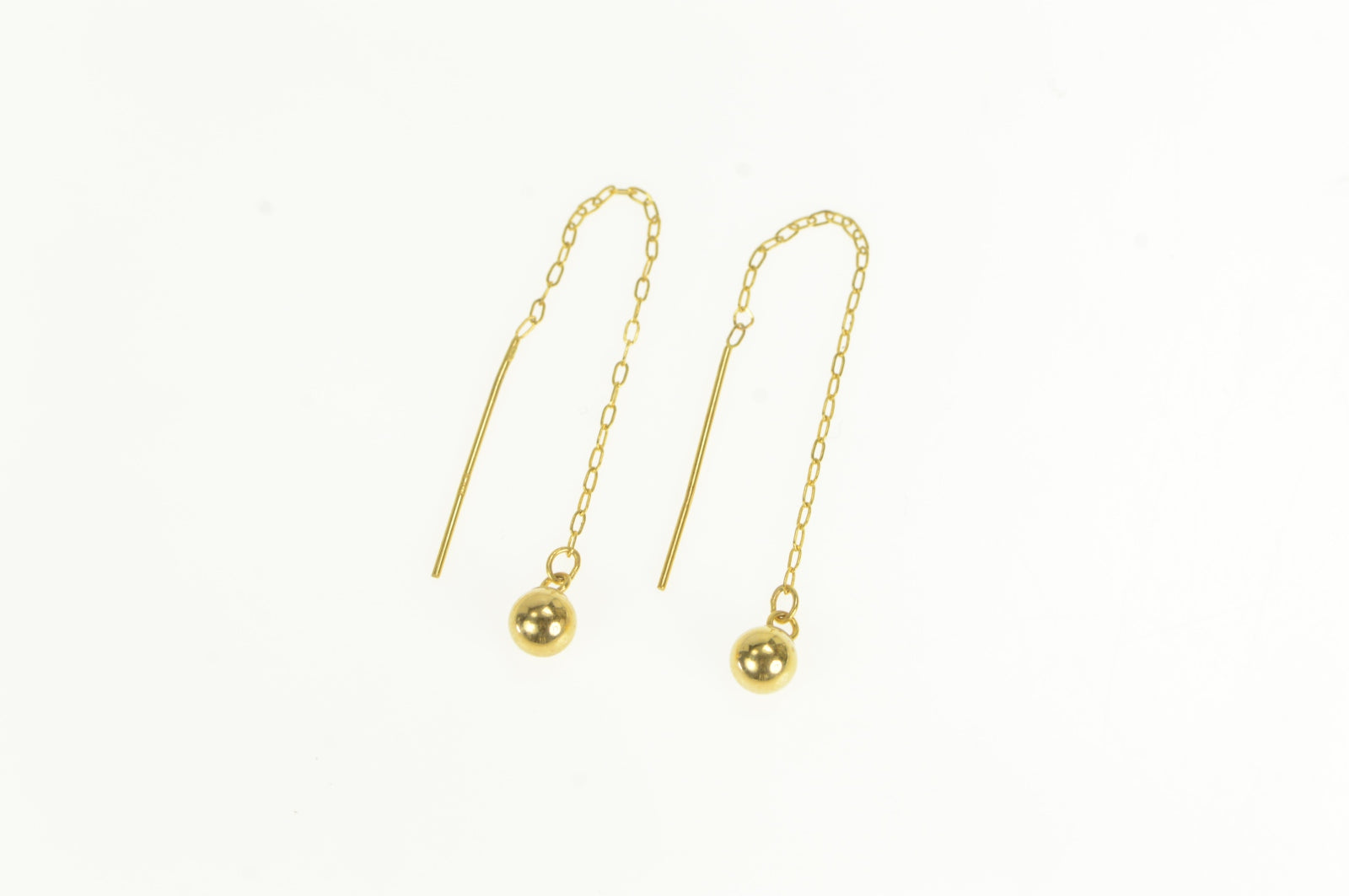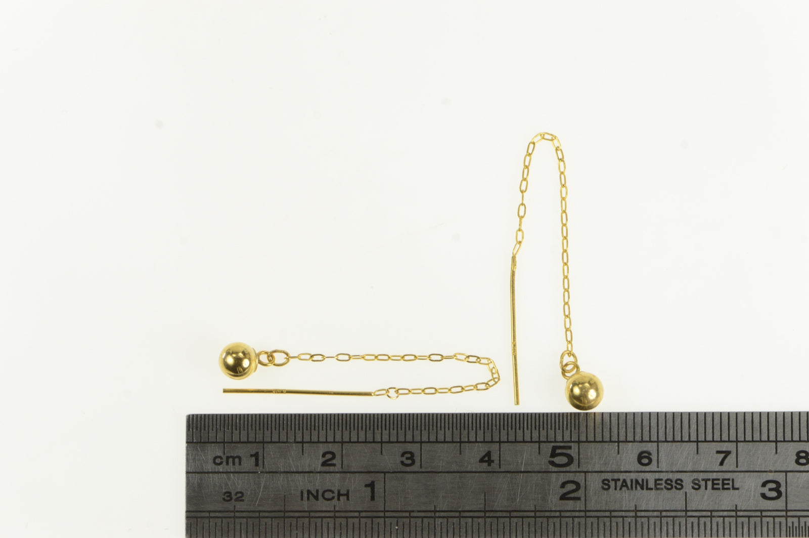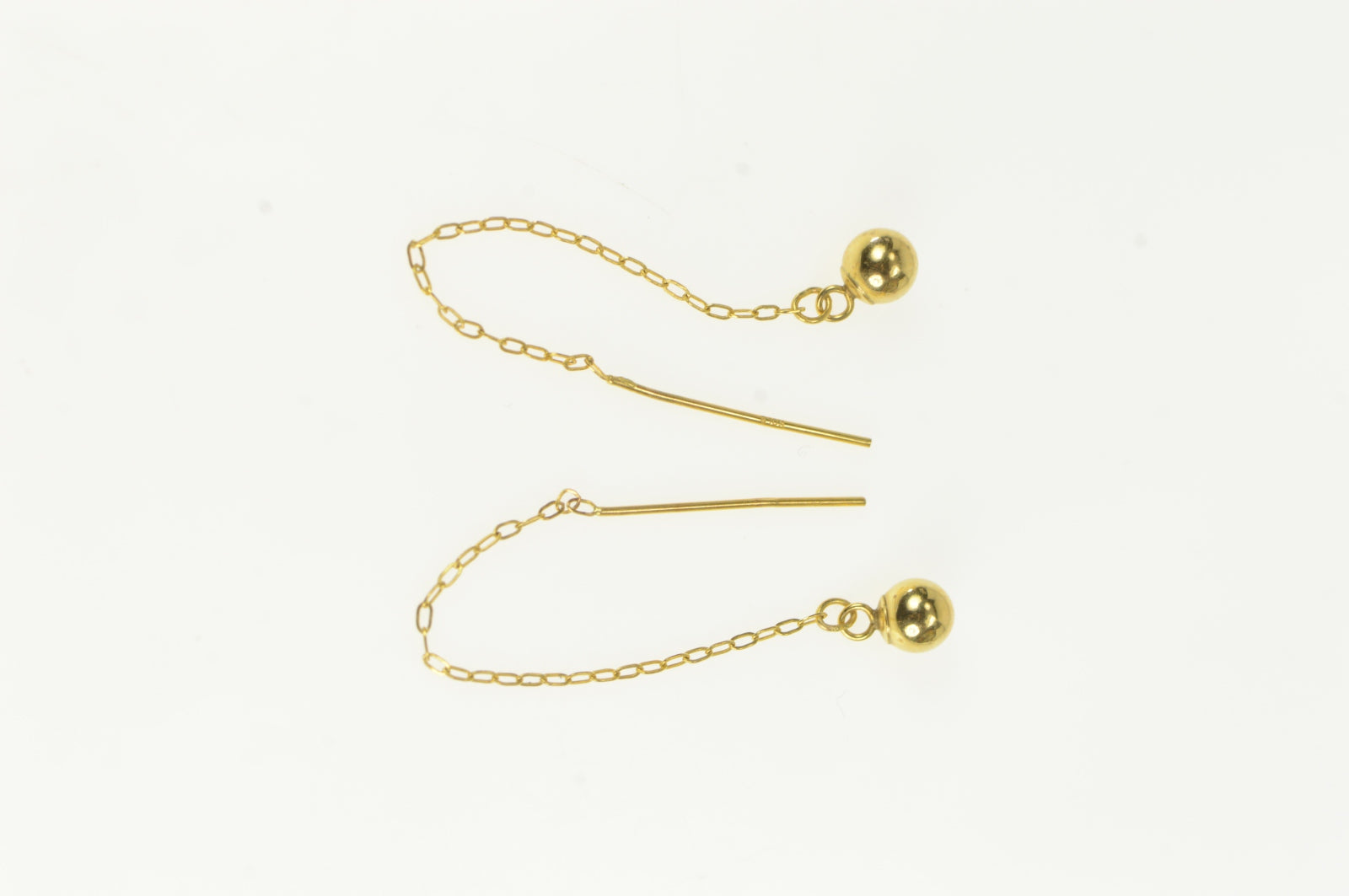 10K Round Ball Dangle Chain Through Ear Earrings Yellow Gold