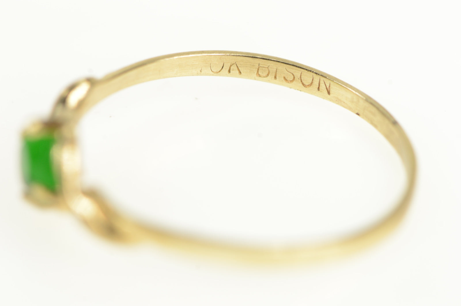 ·Item: 10K Round Sim. Emerald Vintage Simple Statement Ring Size 7 Yellow Gold