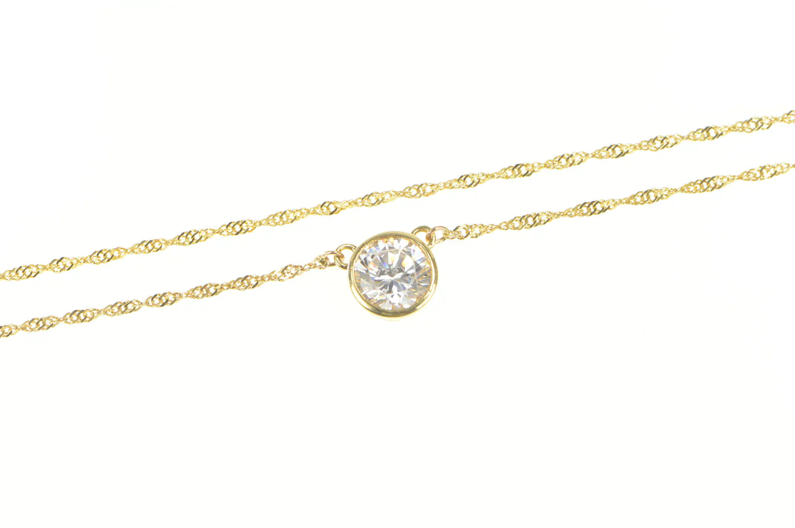 ·Item: 10K Round Solitaire Cubic Zirconia Chain Necklace 16.5" Yellow Gold