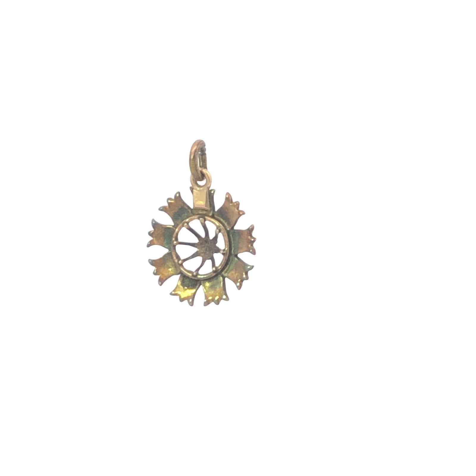 ·Item: 10K Seed Pearl Flower Cluster Statement Charm/Pendant Yellow Gold