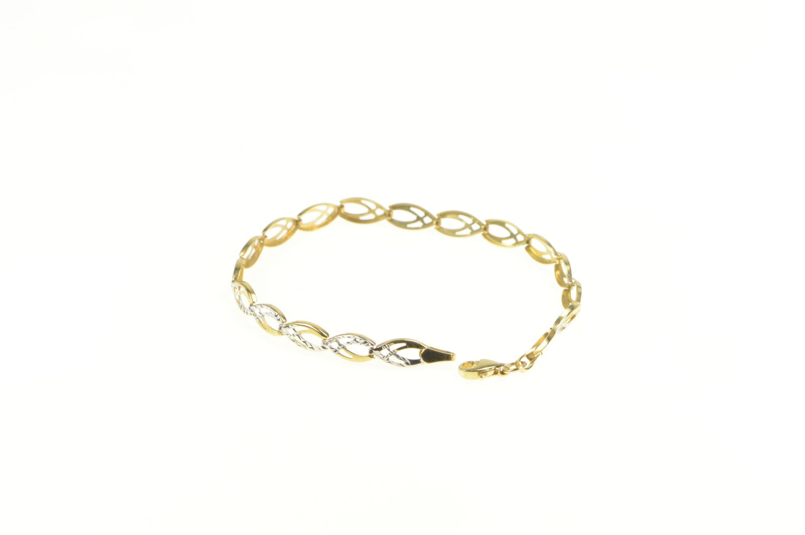 ·Item: 10K Two Tone Geometric Diamond Cut Link Chain Bracelet 7" Yellow Gold