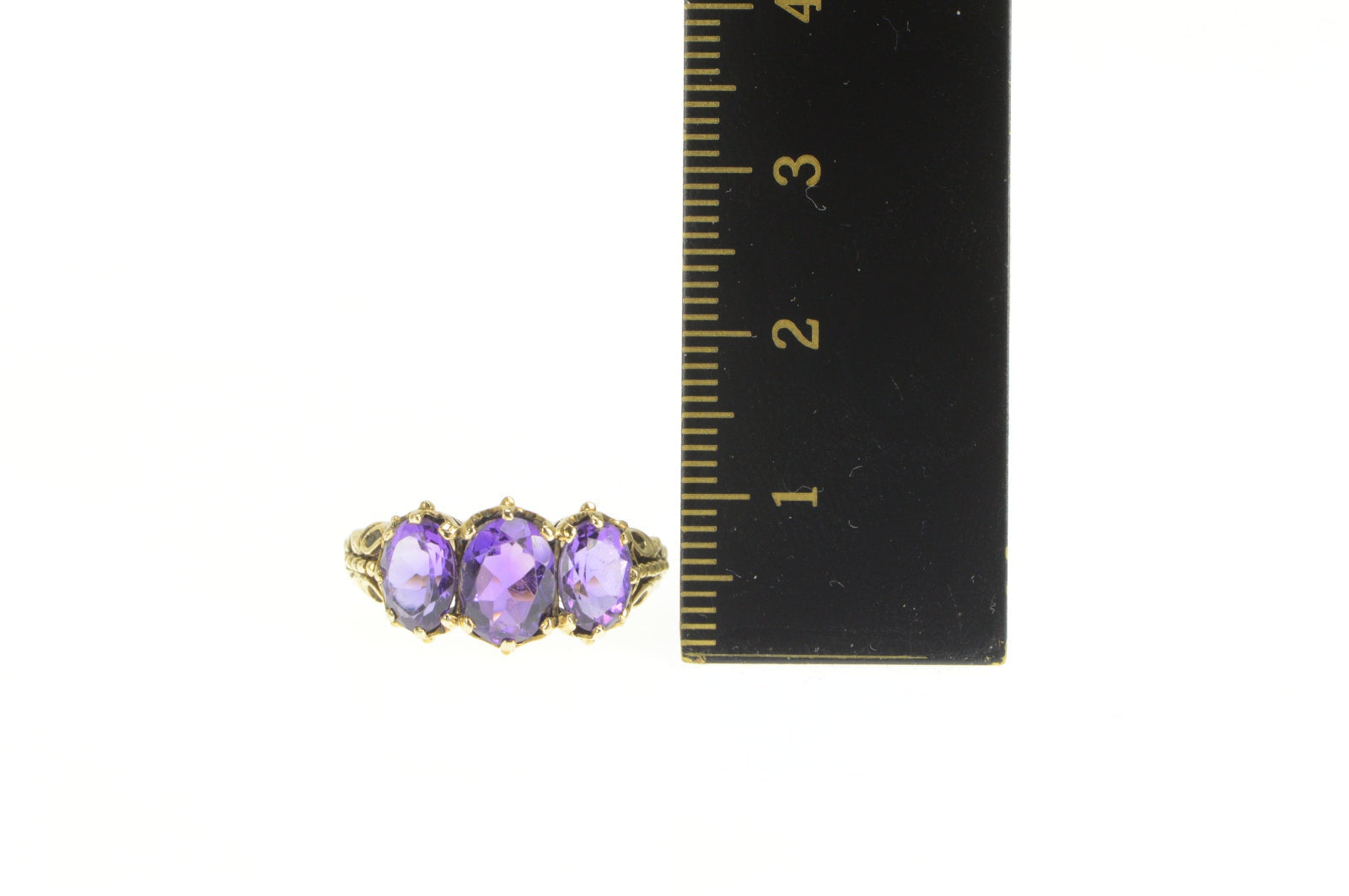 ·Item: 10K Victorian Amethyst Filigree Statement Ring Size 6.25 Yellow Gold