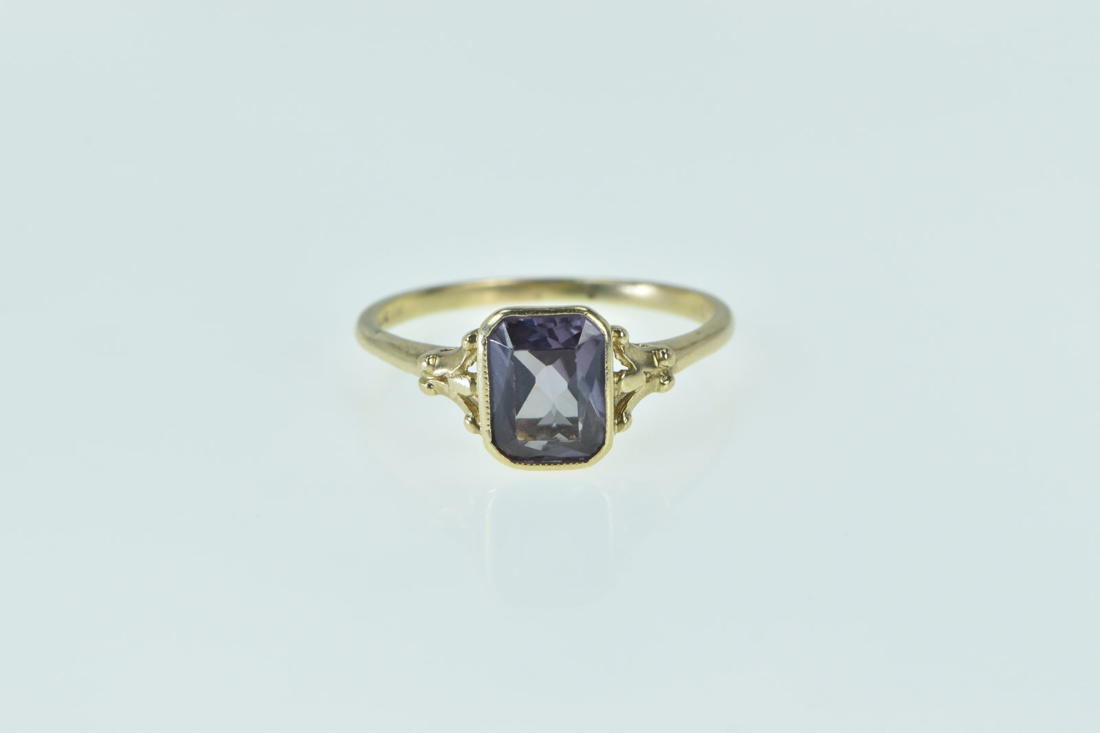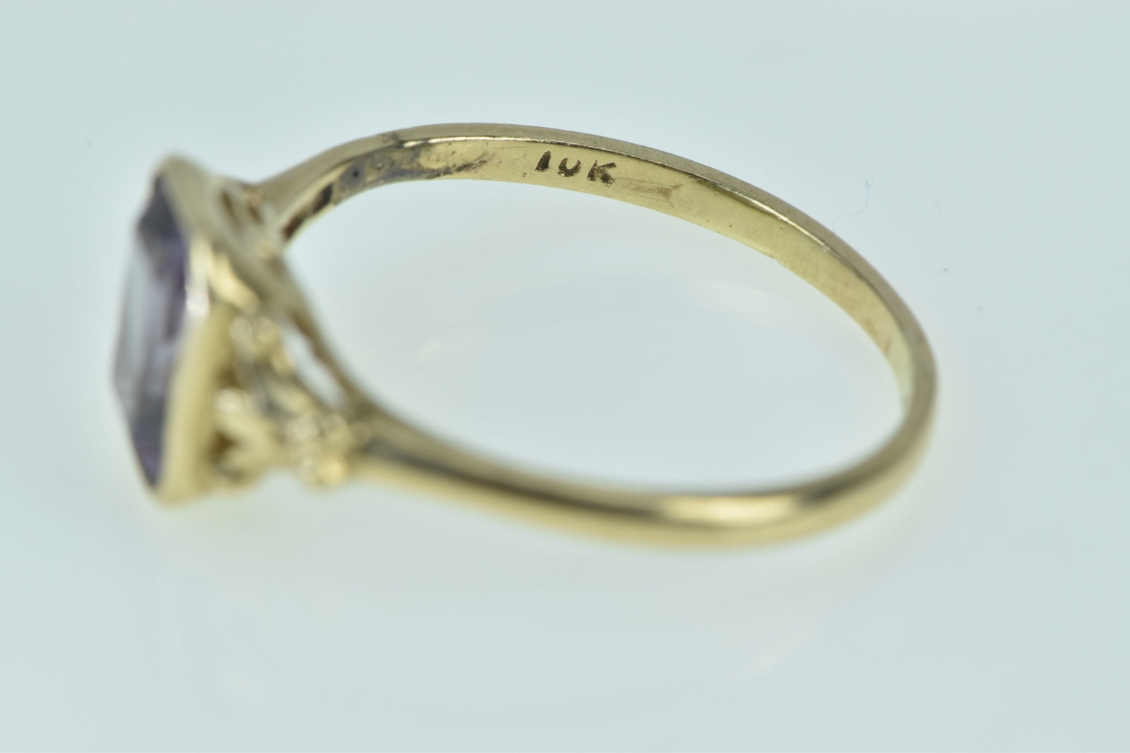 ·Item: 10K Victorian Emerald Cut Amethyst Ornate Ring Size 8 Yellow Gold