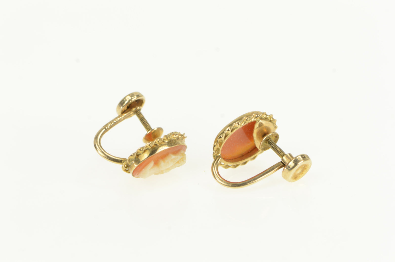 10K Vintage Carved Shell Cameo Screw Back Earrings Yellow Gold
