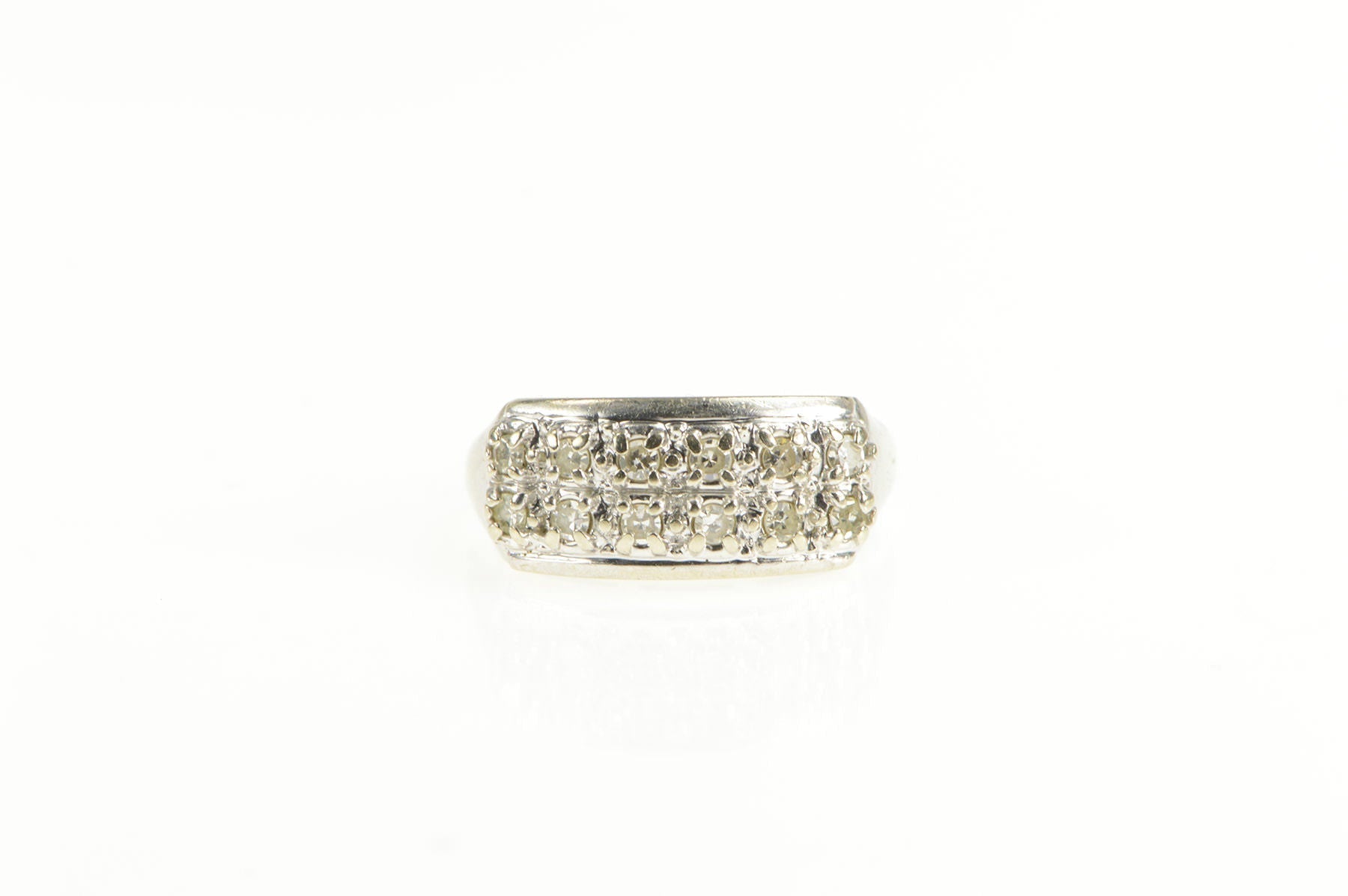 ·Item: 14K 0.25 Ctw Diamond Squared Cluster Band Ring Size 7.5 White Gold
