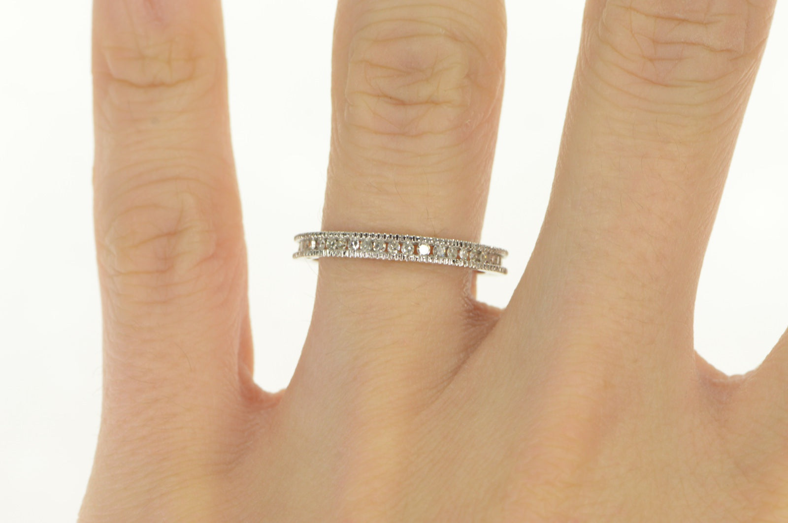 ·Item: 14K 0.28 Ctw Classic Diamond Vintage Wedding Band Ring Size 7.25 White Gold