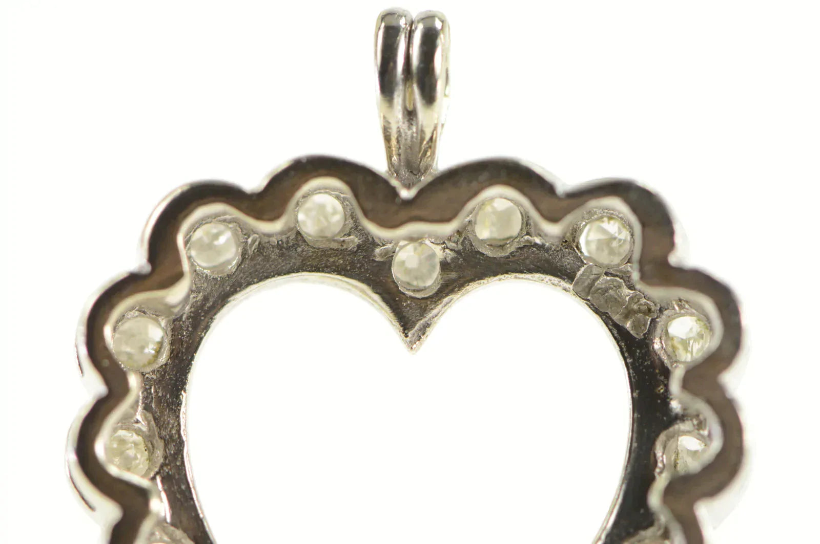 ·Item: 14K 0.50 Ctw 1950's Diamond Heart Love Symbol Pendant White Gold