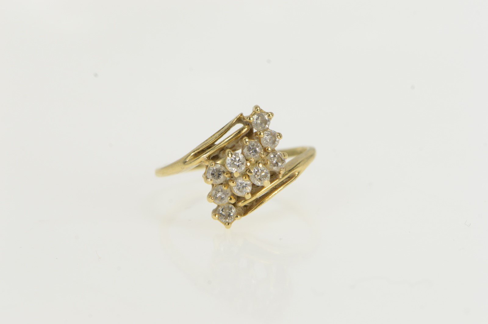 ·Item: 14K 0.50 Ctw Diamond Waterfall Cluster Vintage Ring Size 7.25 Yellow Gold