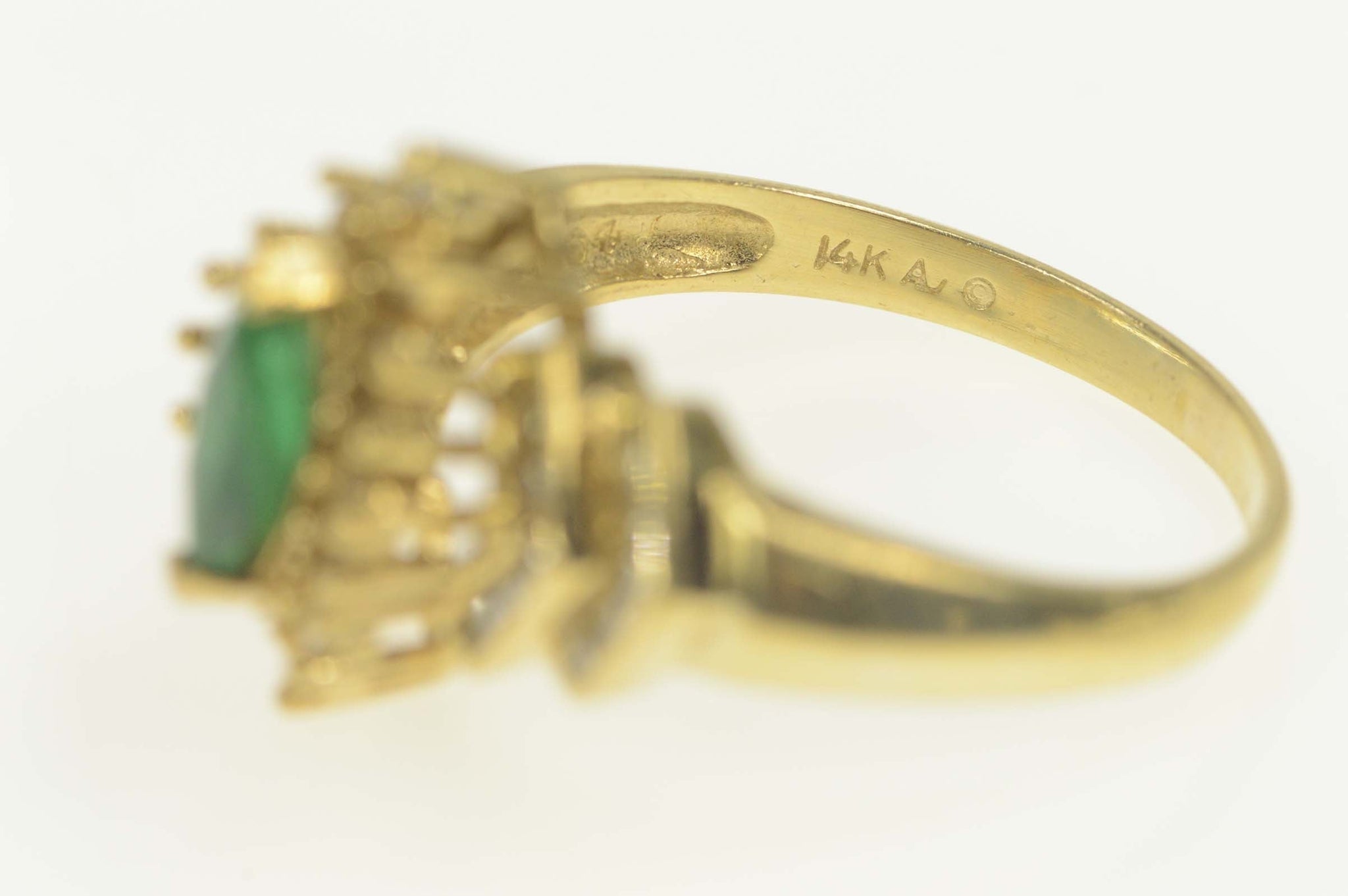 ·Item: 14K 0.65 Ctw Marquise Emerald Diamond Statement Ring Size 10 Yellow Gold