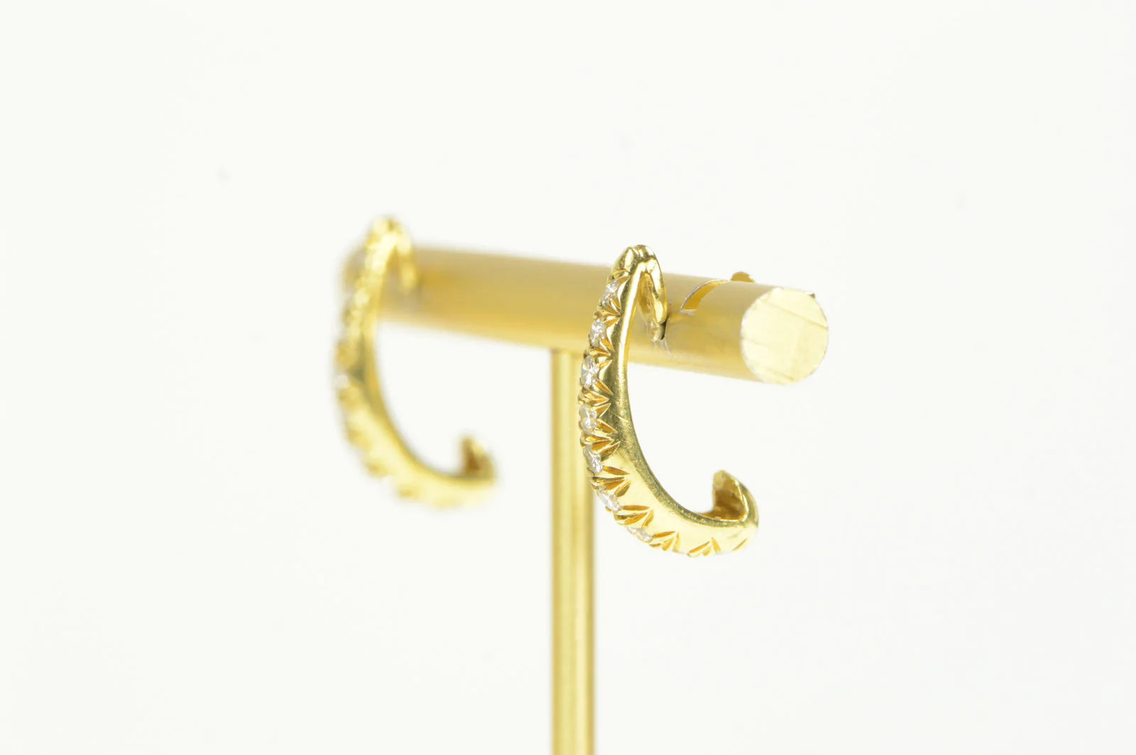 ·Item: 14K 0.66 Ctw Diamond Semi Hoop Curved Bar Earrings Yellow Gold