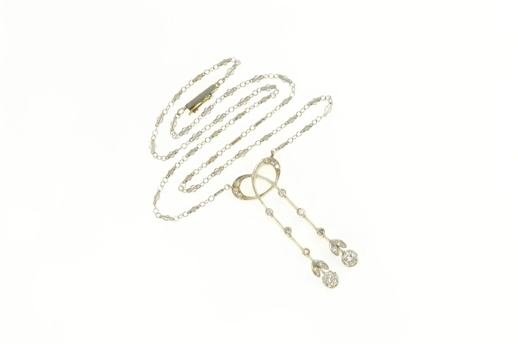 ·Item: 14K 0.72 Ctw Edwardian Diamond Bow Ribbon Drop Necklace 15" Yellow Gold