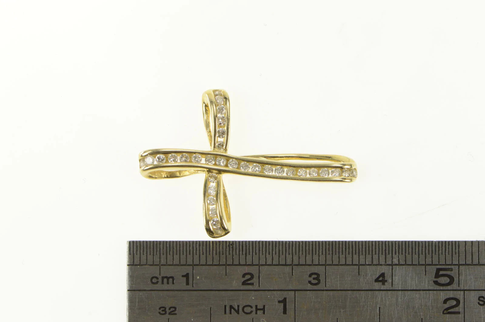 ·Item: 14K 0.75 Ctw Diamond Cross Faith Symbol Curvy Pendant Yellow Gold