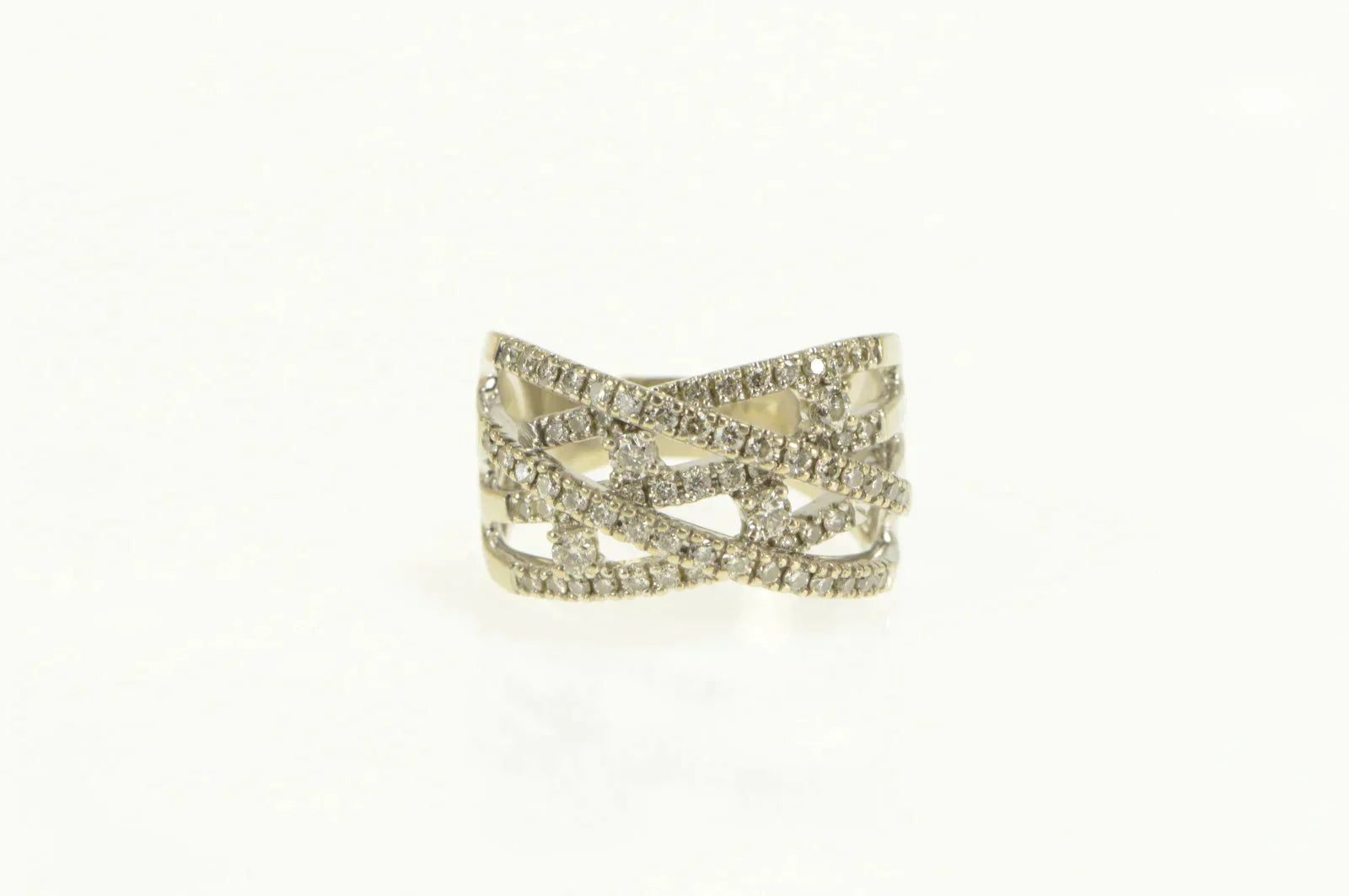 ·Item: 14K 0.75 Ctw Pave Diamond Layered Criss Cross Ring Size 7 White Gold