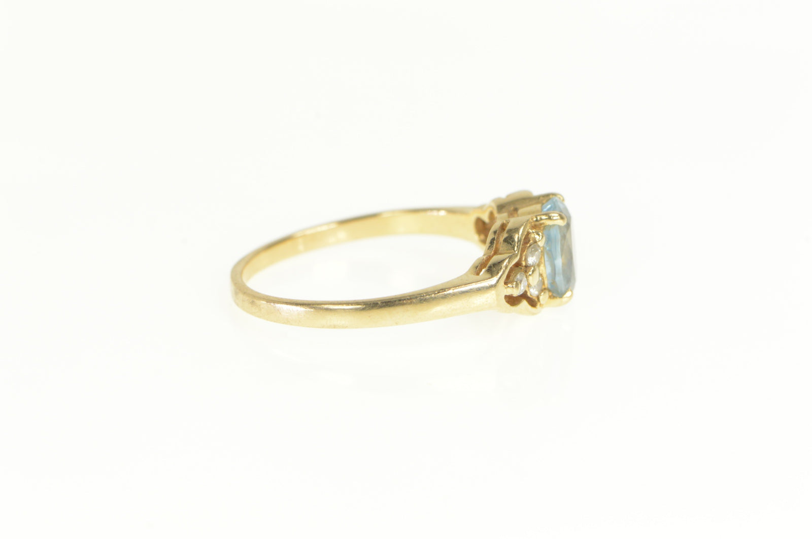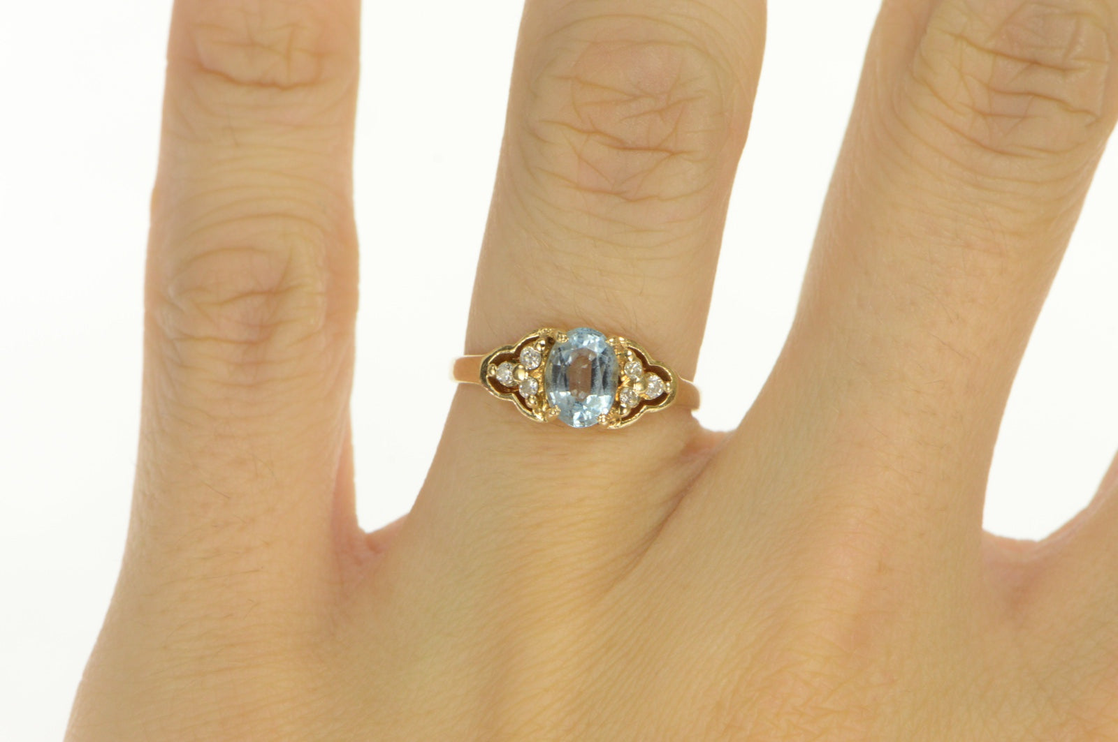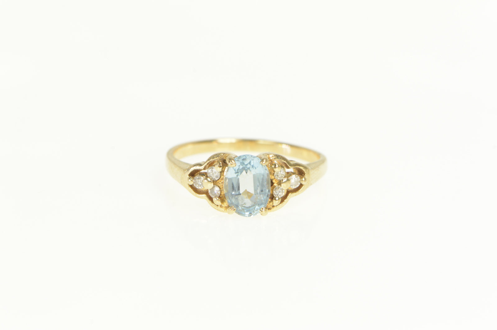 ·Item: 14K 1.10 Ctw Blue Topaz Diamond Cluster Accent Ring Size 5.75 Yellow Gold