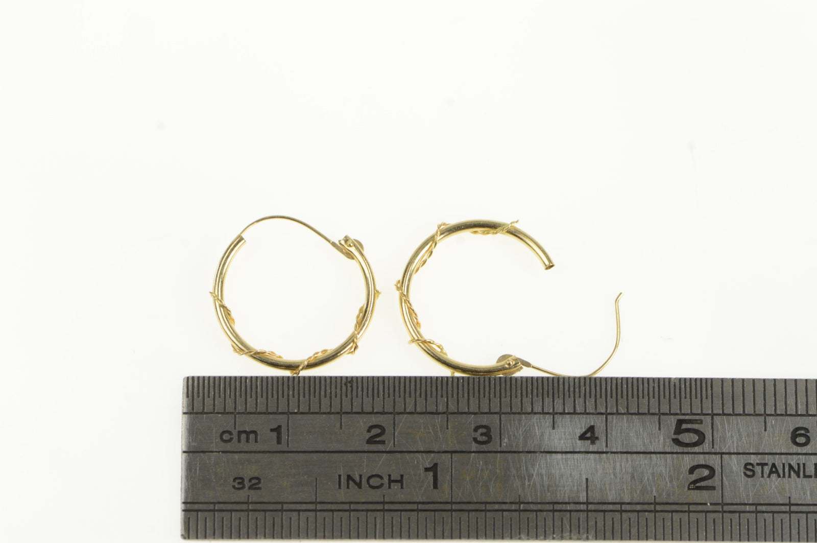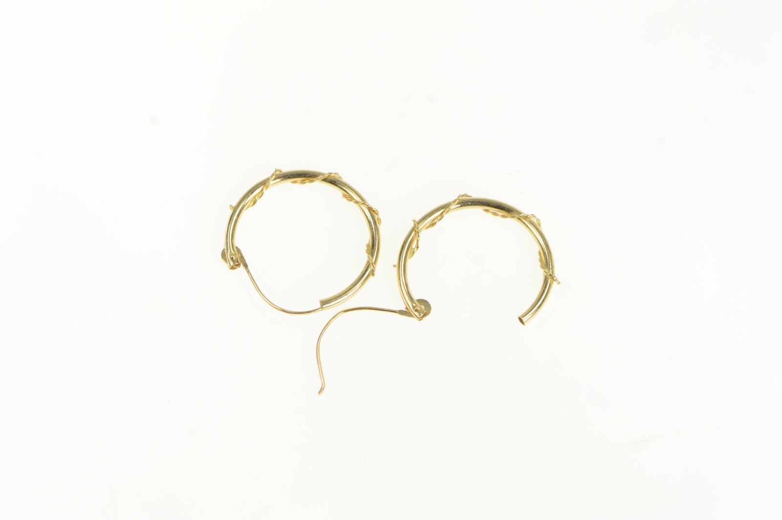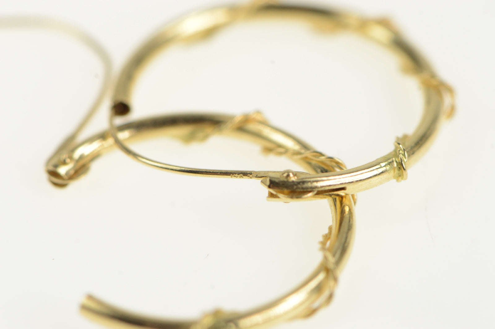 14K 16.0mm Vintage Rope Twist Pattern Hoop Earrings Yellow Gold