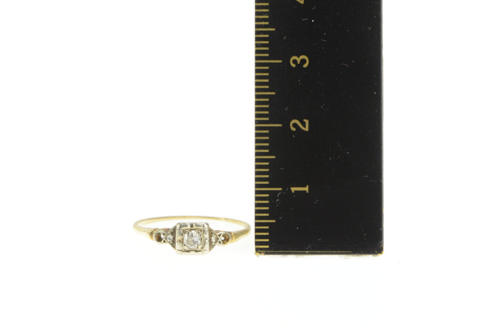 ·Item: 14K 1940's Classic Diamond Solitaire Promise Ring Size 6.5 Yellow Gold