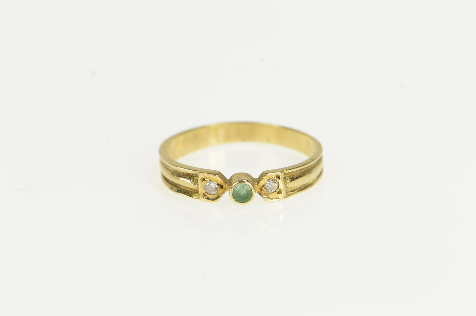 ·Item: 14K 1940's Emerald Diamond Accent Vintage Ring Size 6.25 Yellow Gold