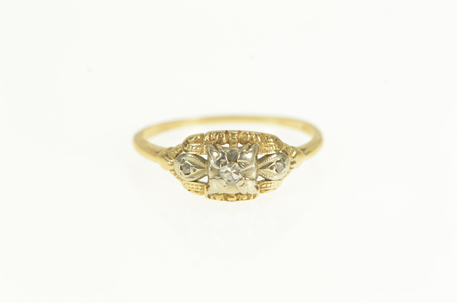 ·Item: 14K 1940's Ornate Diamond Classic Promise Ring Size 6 Yellow Gold