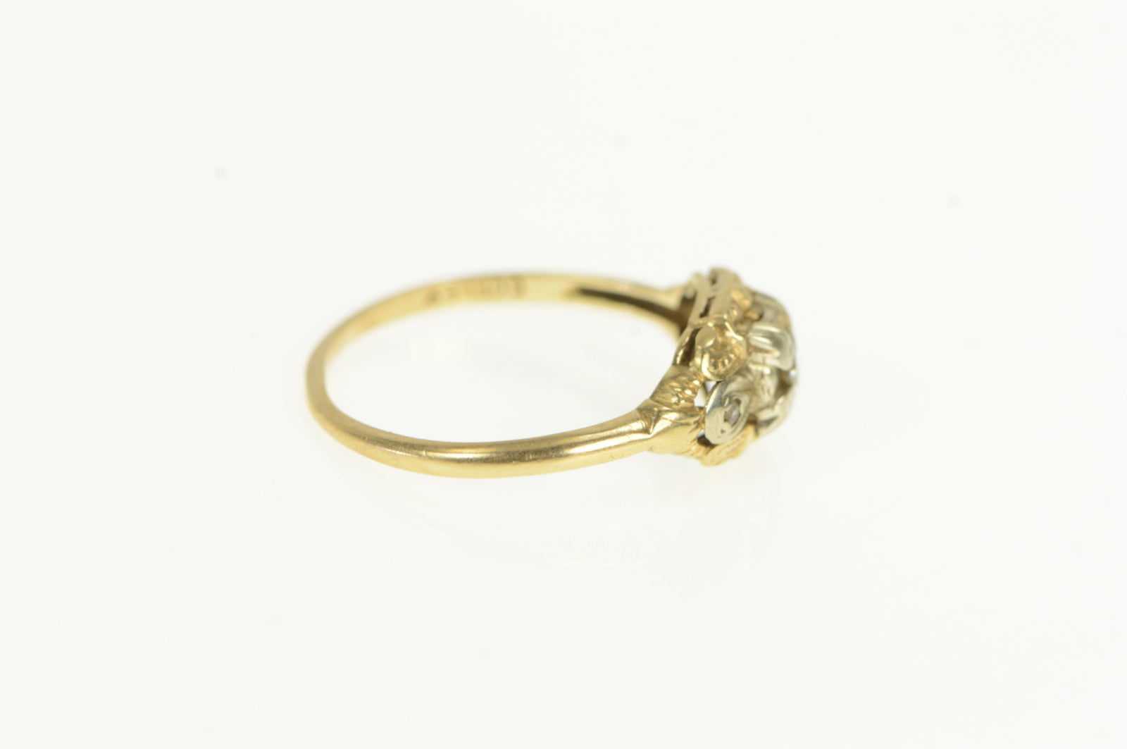 14K 1940's Ornate Diamond Classic Promise Ring Yellow Gold