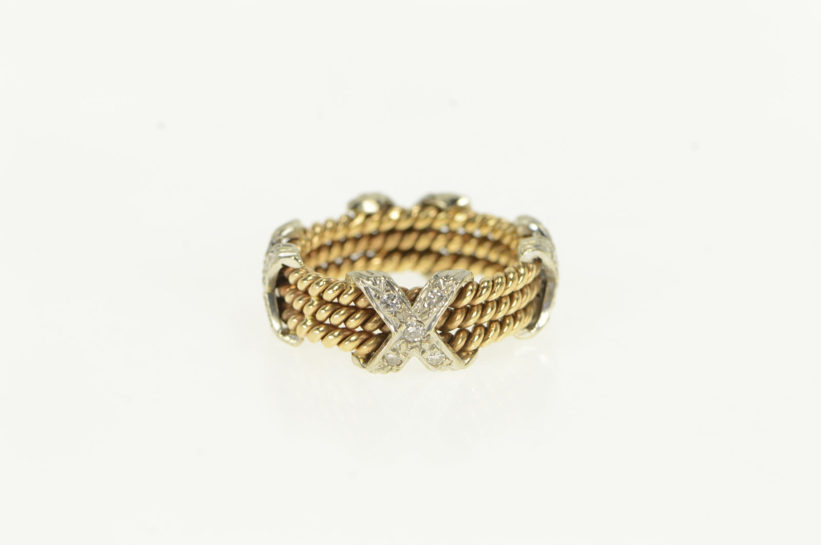 ·Item: 14K 1940's Ornate Diamond X Rope Pattern Band Ring Size 5.25 Yellow Gold