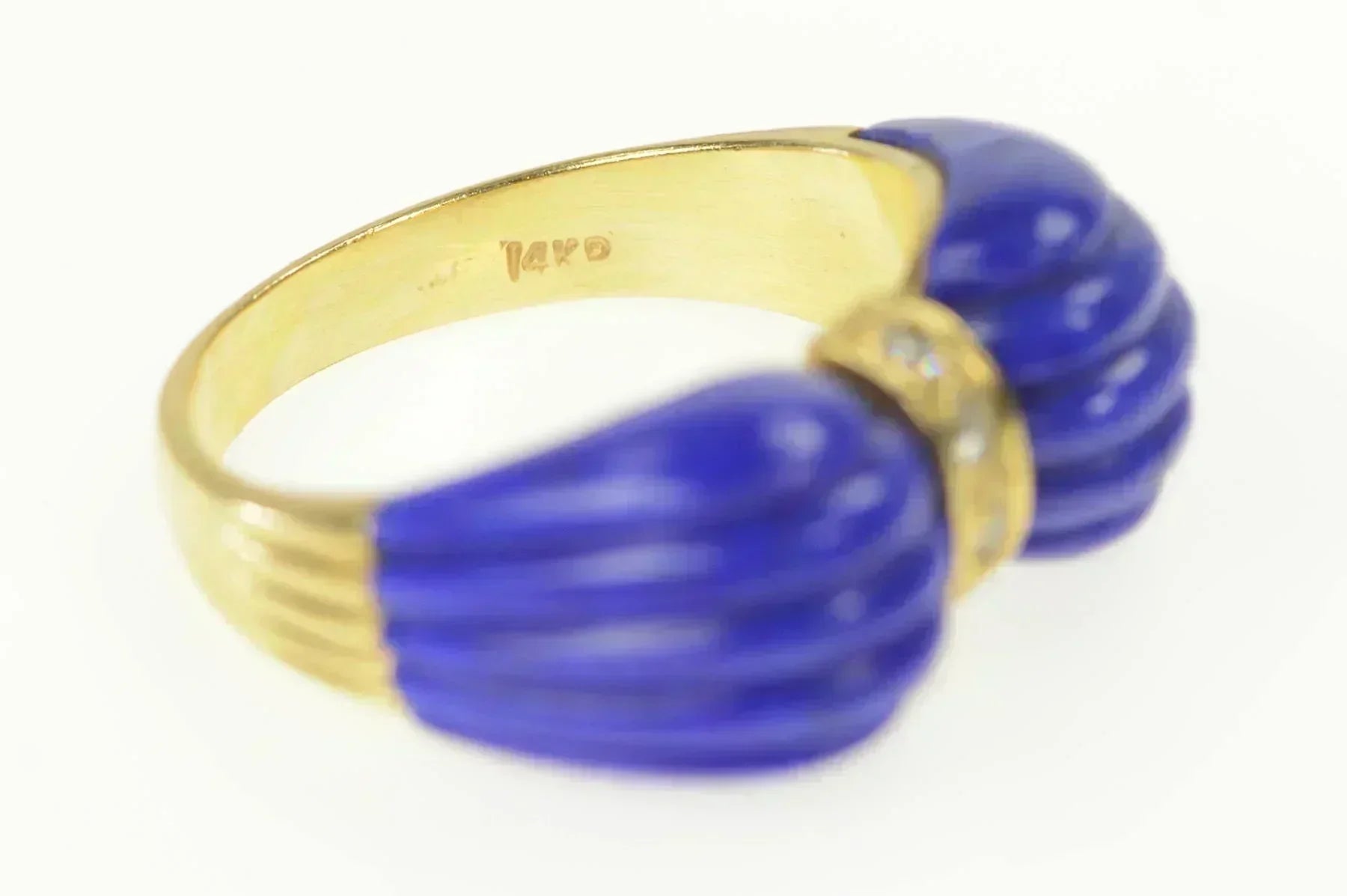 ·Item: 14K 1950's Carved Lapis Lazuli Diamond Bow Ring Size 6.5 Yellow Gold