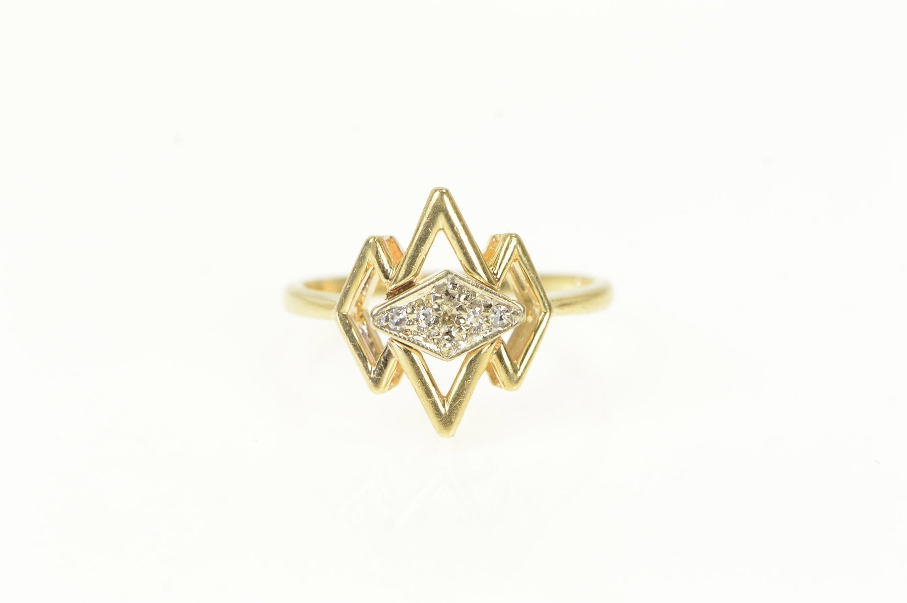 ·Item: 14K 1950s Diamond Zig Zag Promise Statement Ring Size 7 Yellow Gold