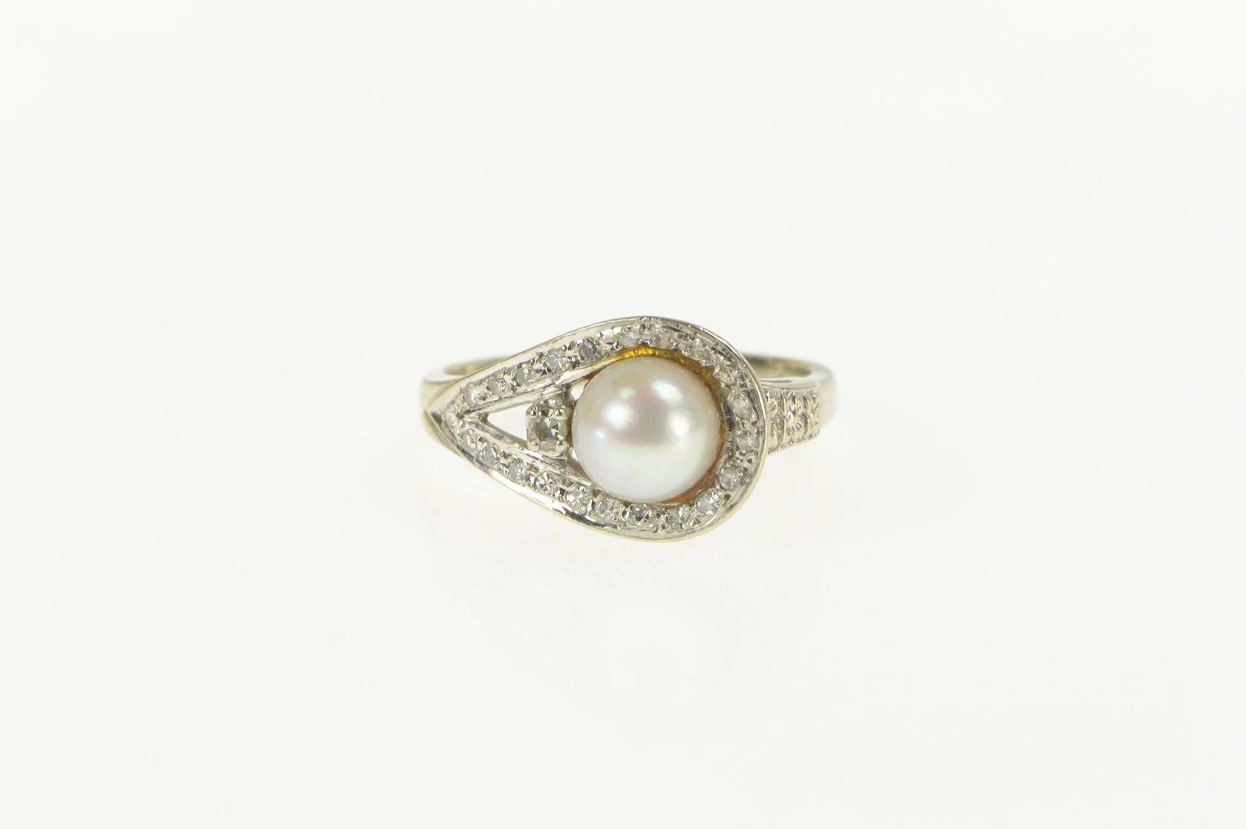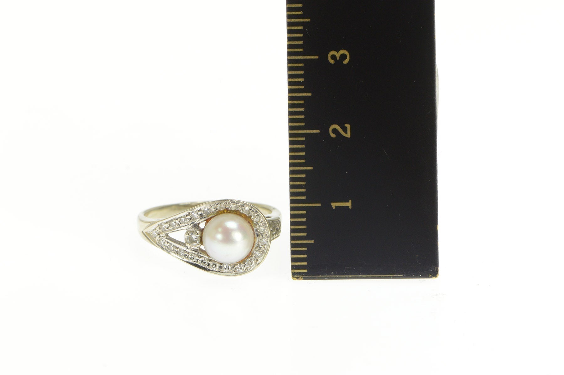 ·Item: 14K 1950's Pearl Diamond Loop Halo Statement Ring Size 7.25 White Gold