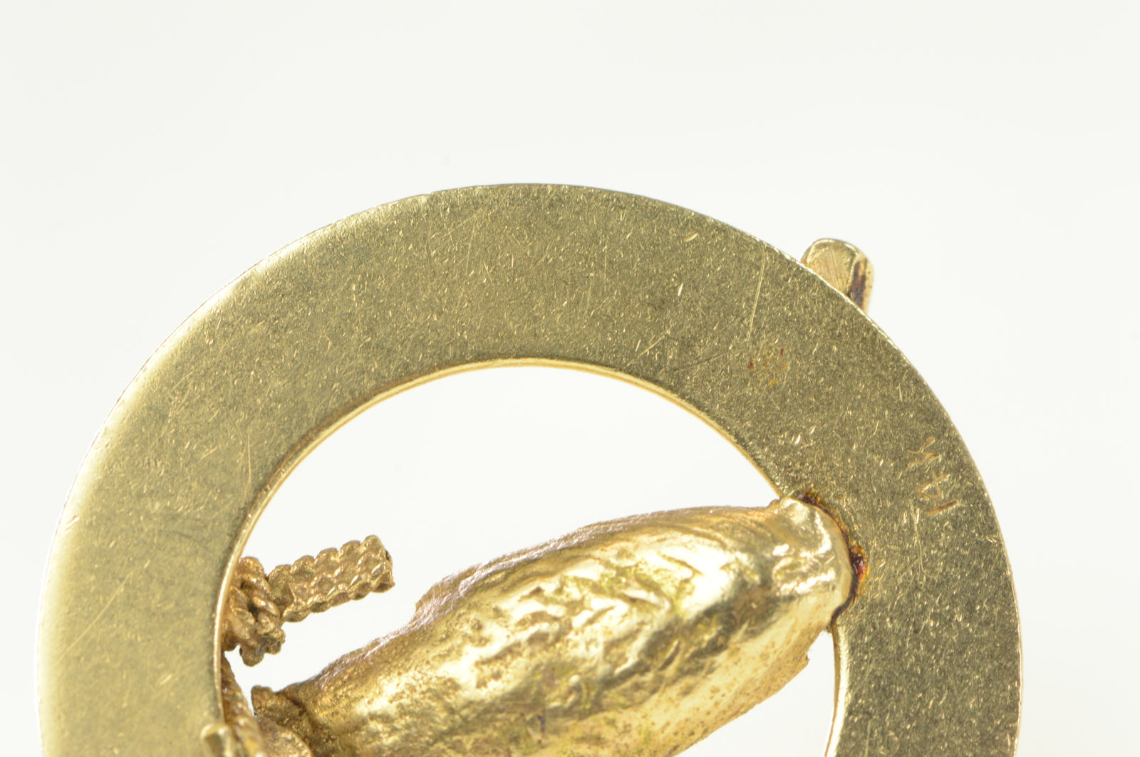 ·Item: 14K 1960's Retro Ornate Owl Wisdom Symbol Charm/Pendant Yellow Gold