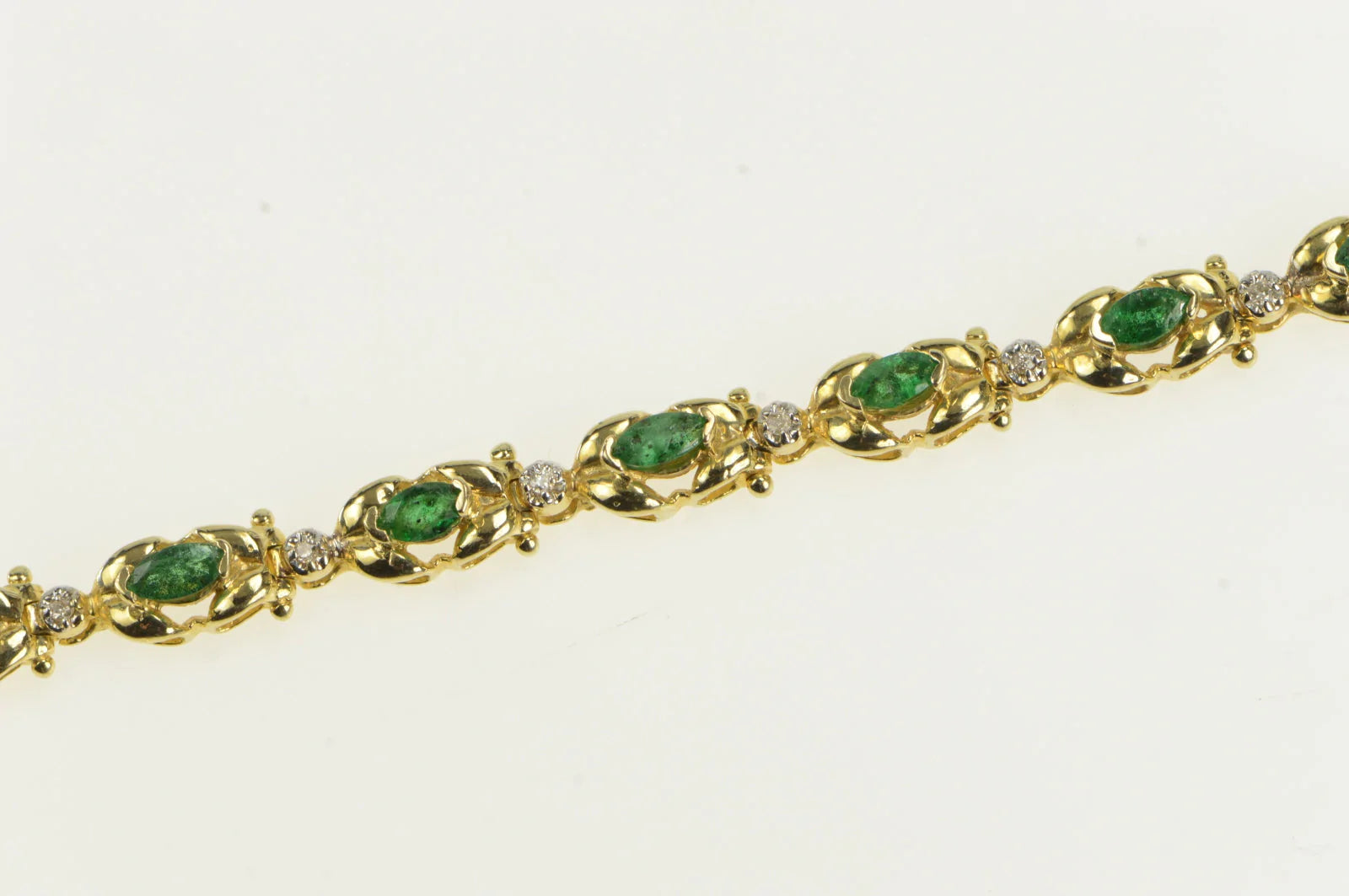 ·Item: 14K 2.15 Ctw Natural Marquise Emerald Tennis Bracelet 6.75" Yellow Gold