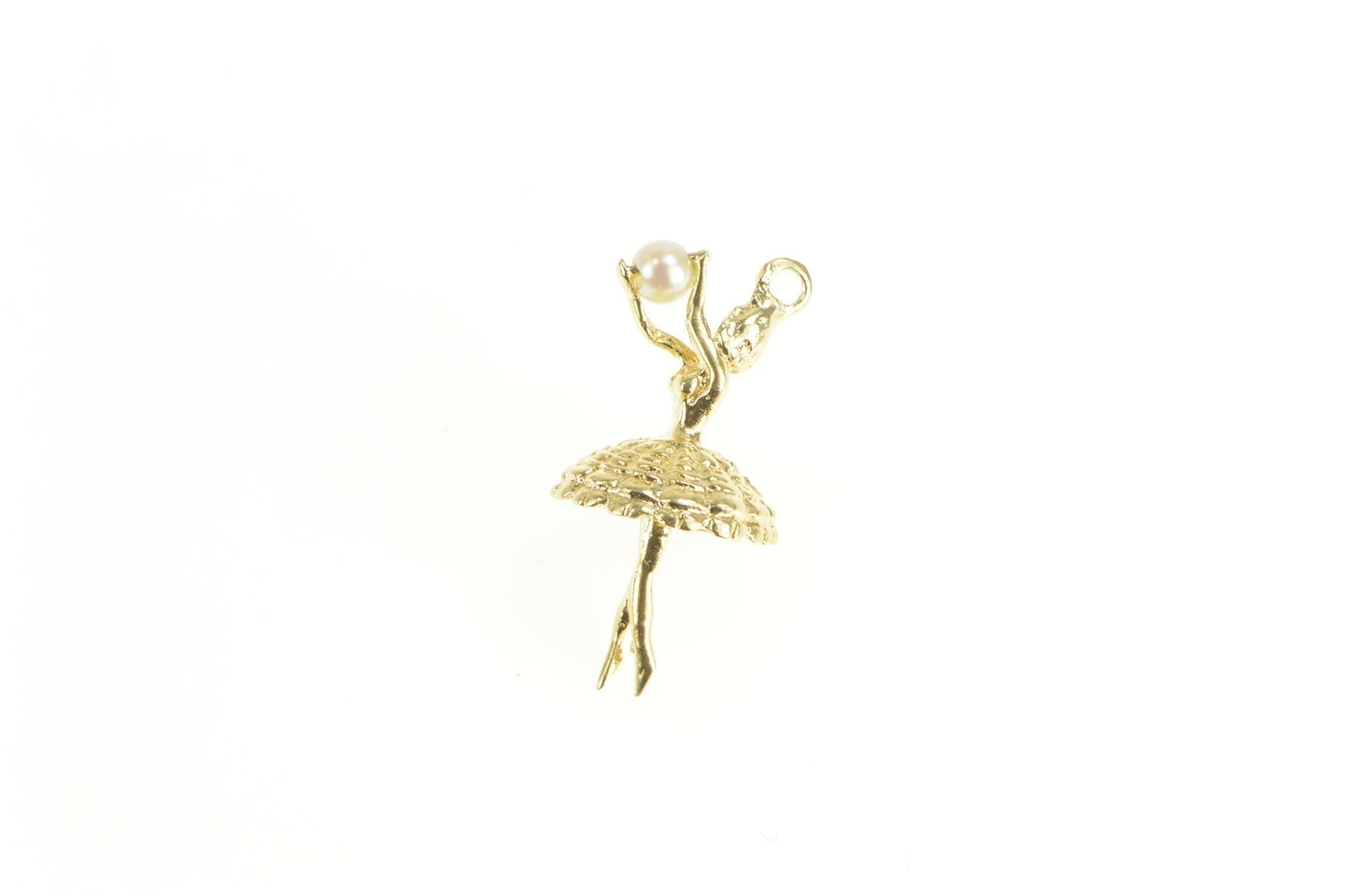 ·Item: 14K 3D Retro Pearl Ballerina Ballet Dancer Charm/Pendant Yellow Gold