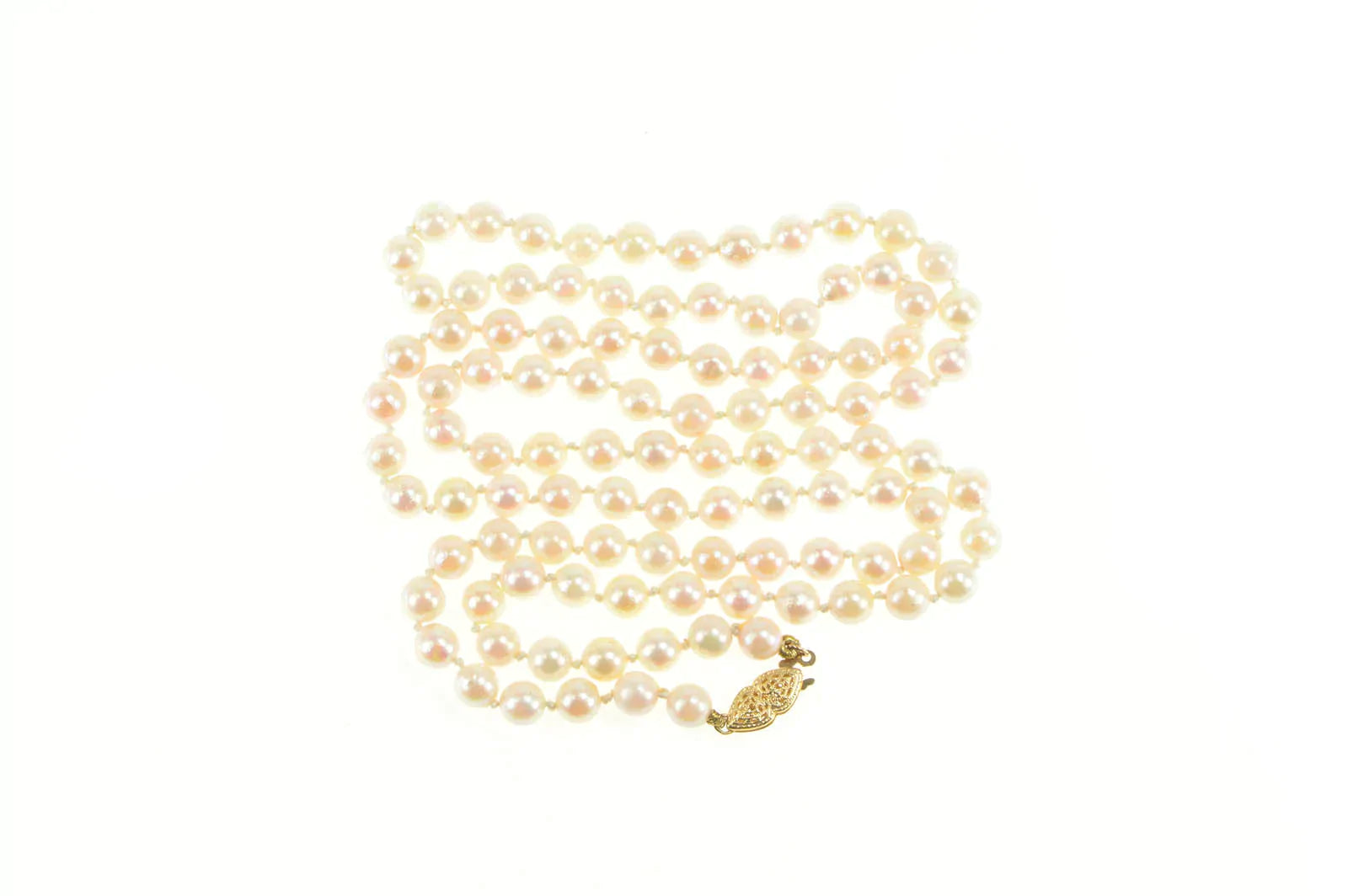 ·Item: 14K 6.0mm Pale Pink Pearl Retro Beaded Necklace 30.25" Yellow Gold