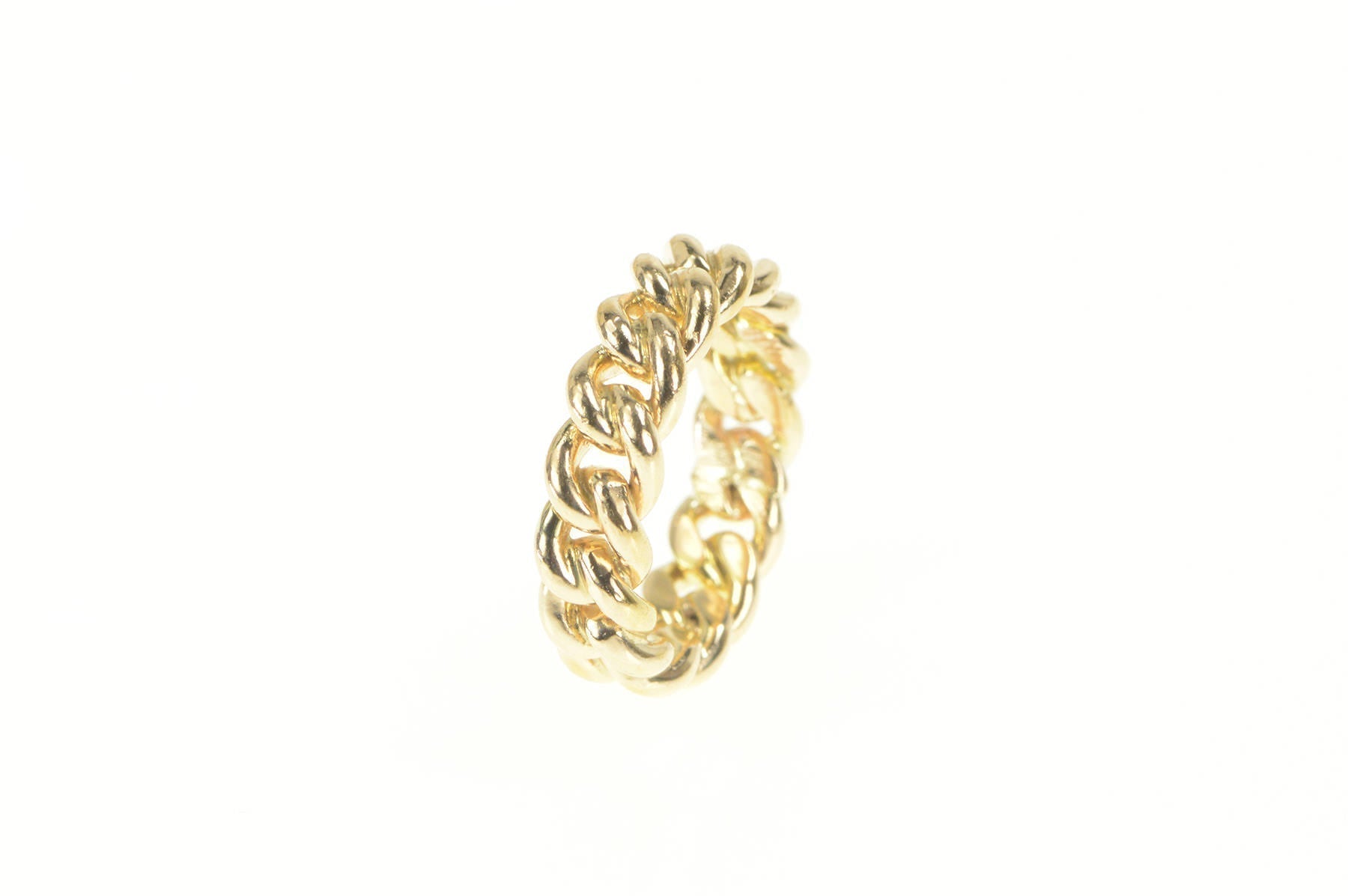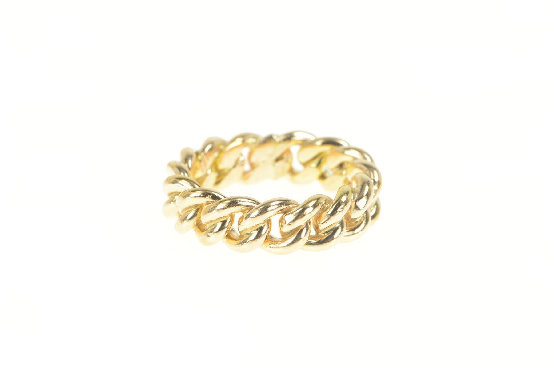 ·Item: 14K 6.2mm Cuban Link Chain Pattern Statement Band Ring Size 6 Yellow Gold