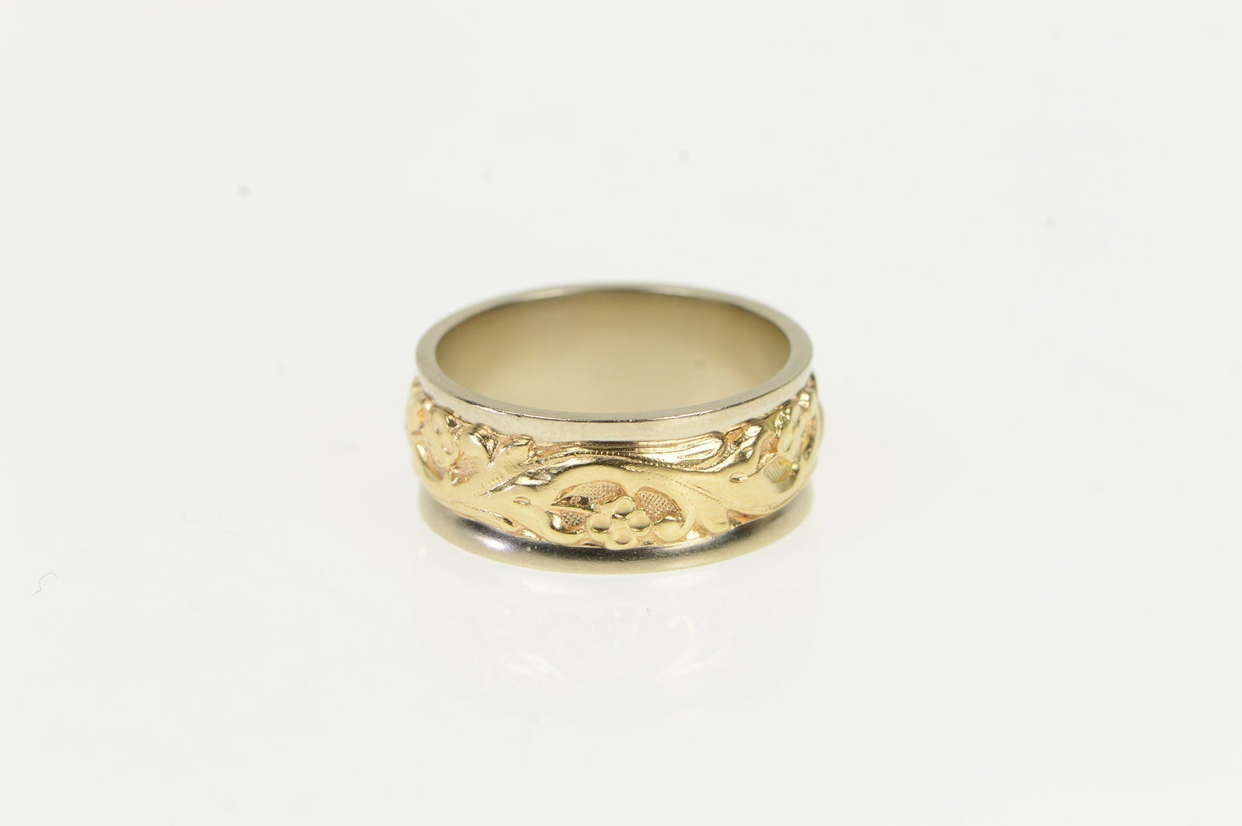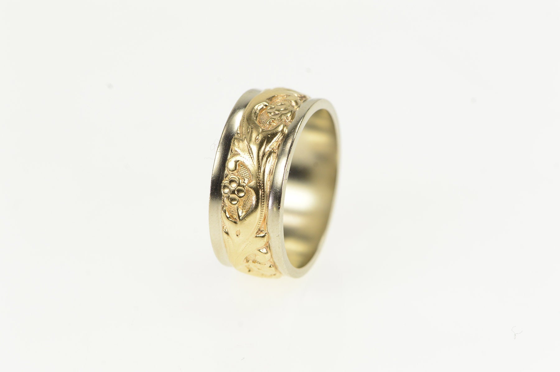 ·Item: 14K 8.0mm Two Tone Ornate Scroll Wedding Band Ring Size 6.75 Yellow Gold
