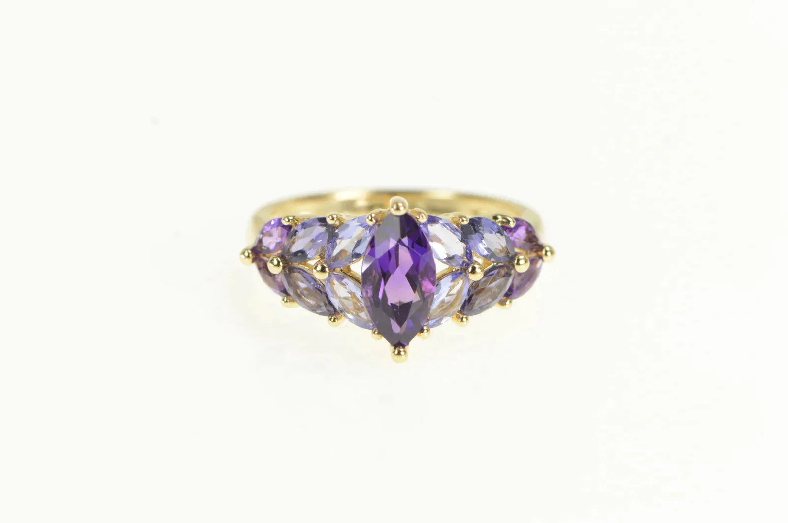 ·Item: 14K Amethyst Iolite Tanzanite Marquise Cluster Ring Size 7 Yellow Gold