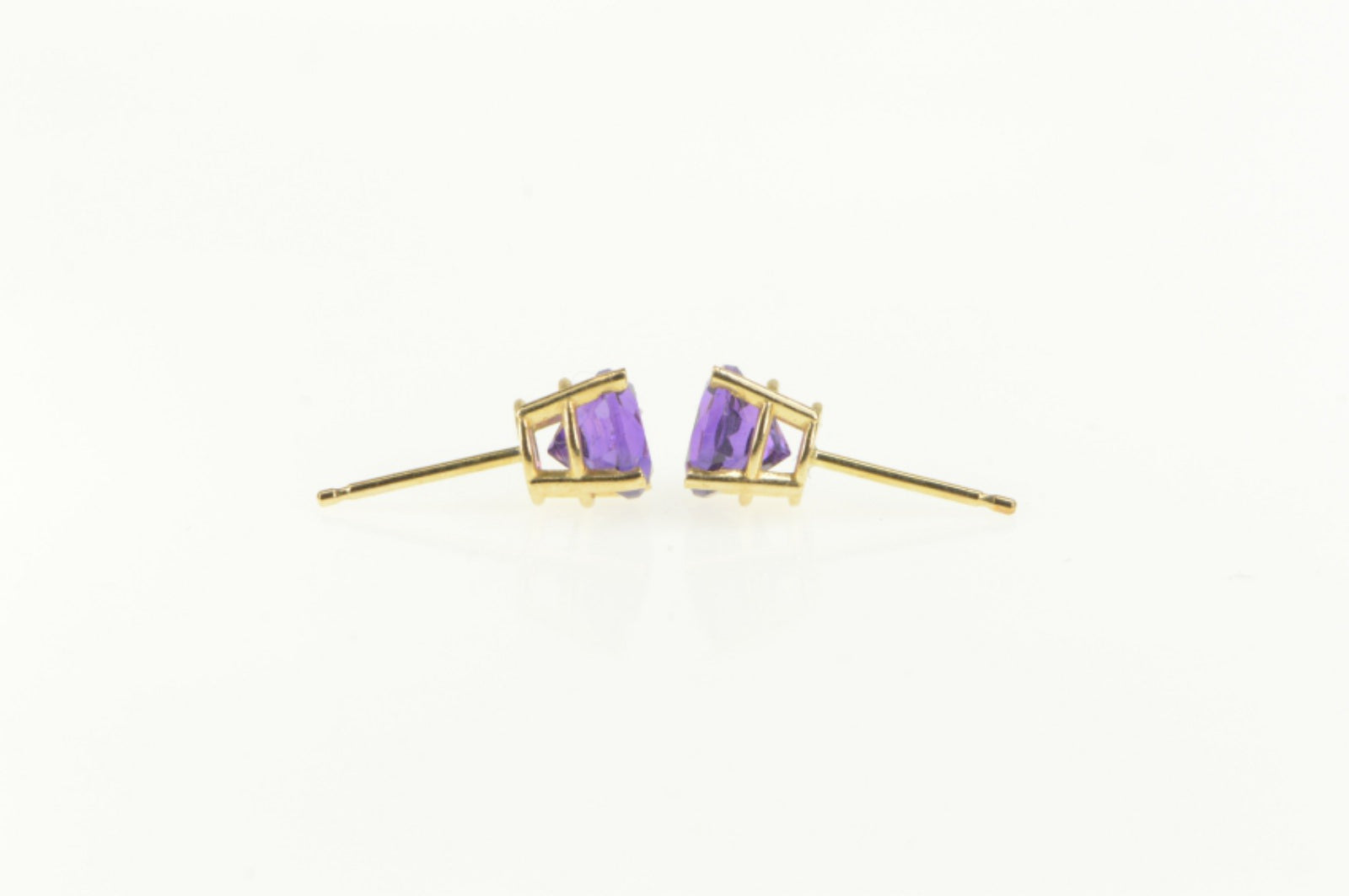 ·Item: 14K Amethyst Round Solitaire Classic Stud Earrings Yellow Gold