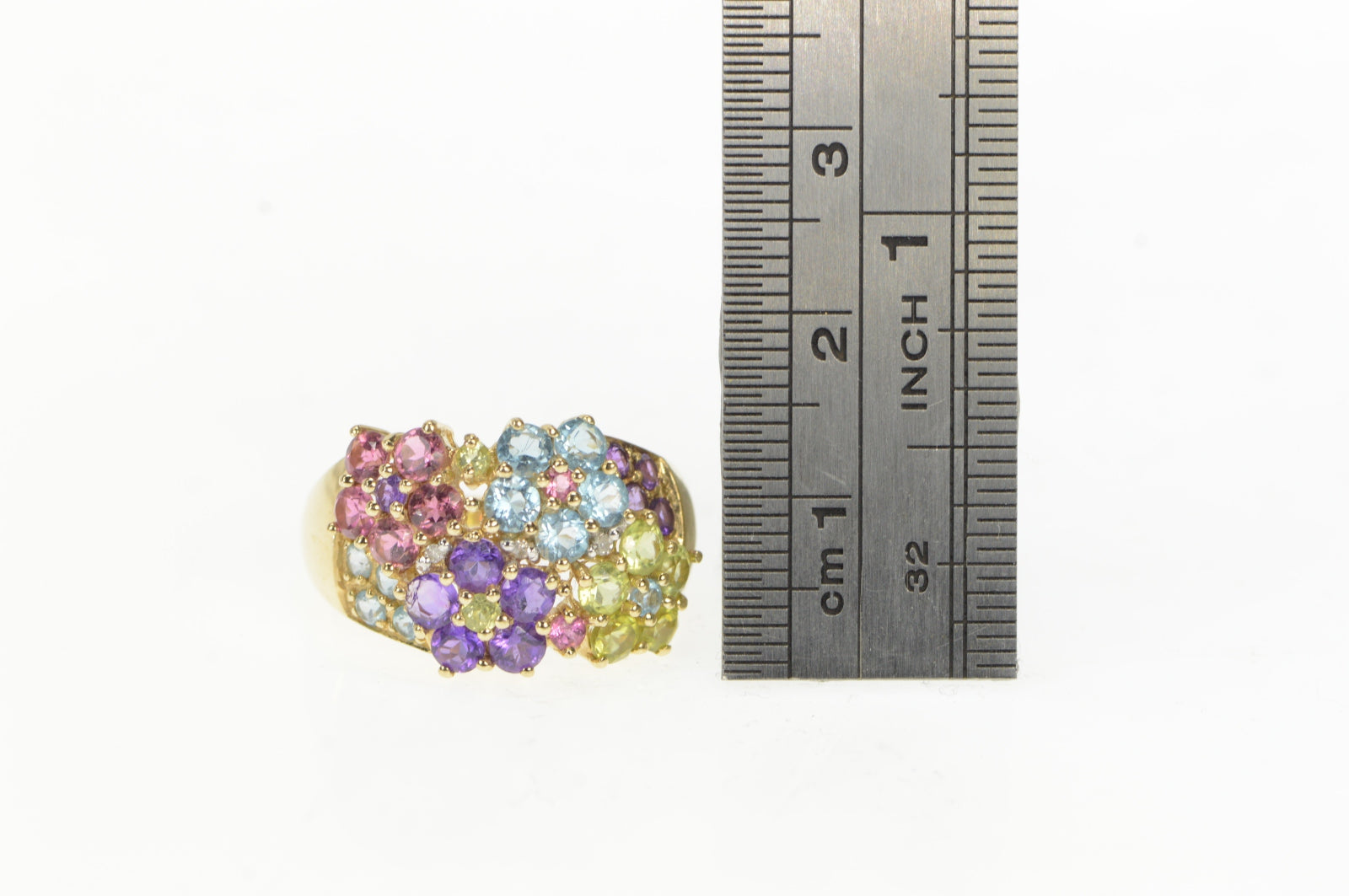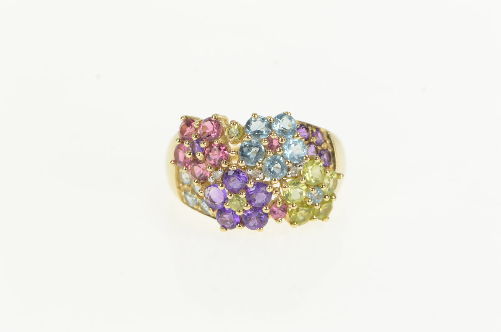 14K Amethyst Topaz Peridot Flower Cluster Statement Ring Yellow Gold