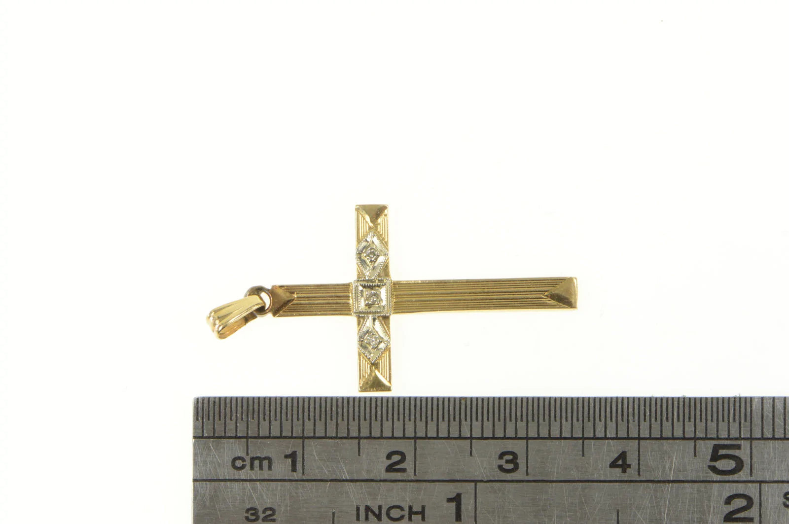 ·Item: 14K Art Deco Diamond Inset Vintage Cross Pendant Yellow Gold