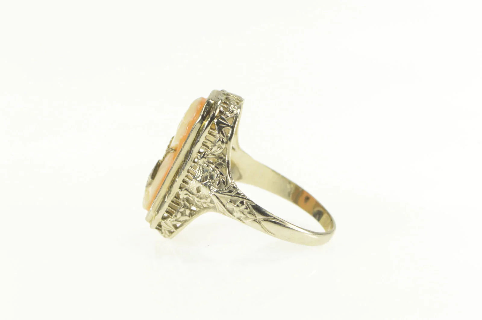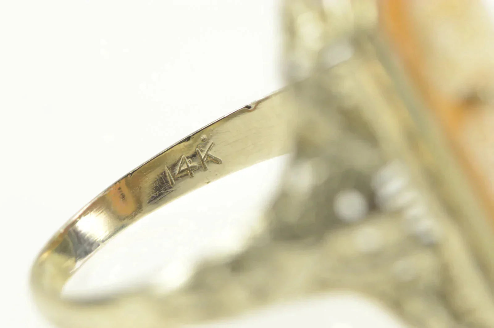 ·Item: 14K Art Deco Filigree Cameo Diamond Necklace Lady Ring Size 6.75 Yellow Gold