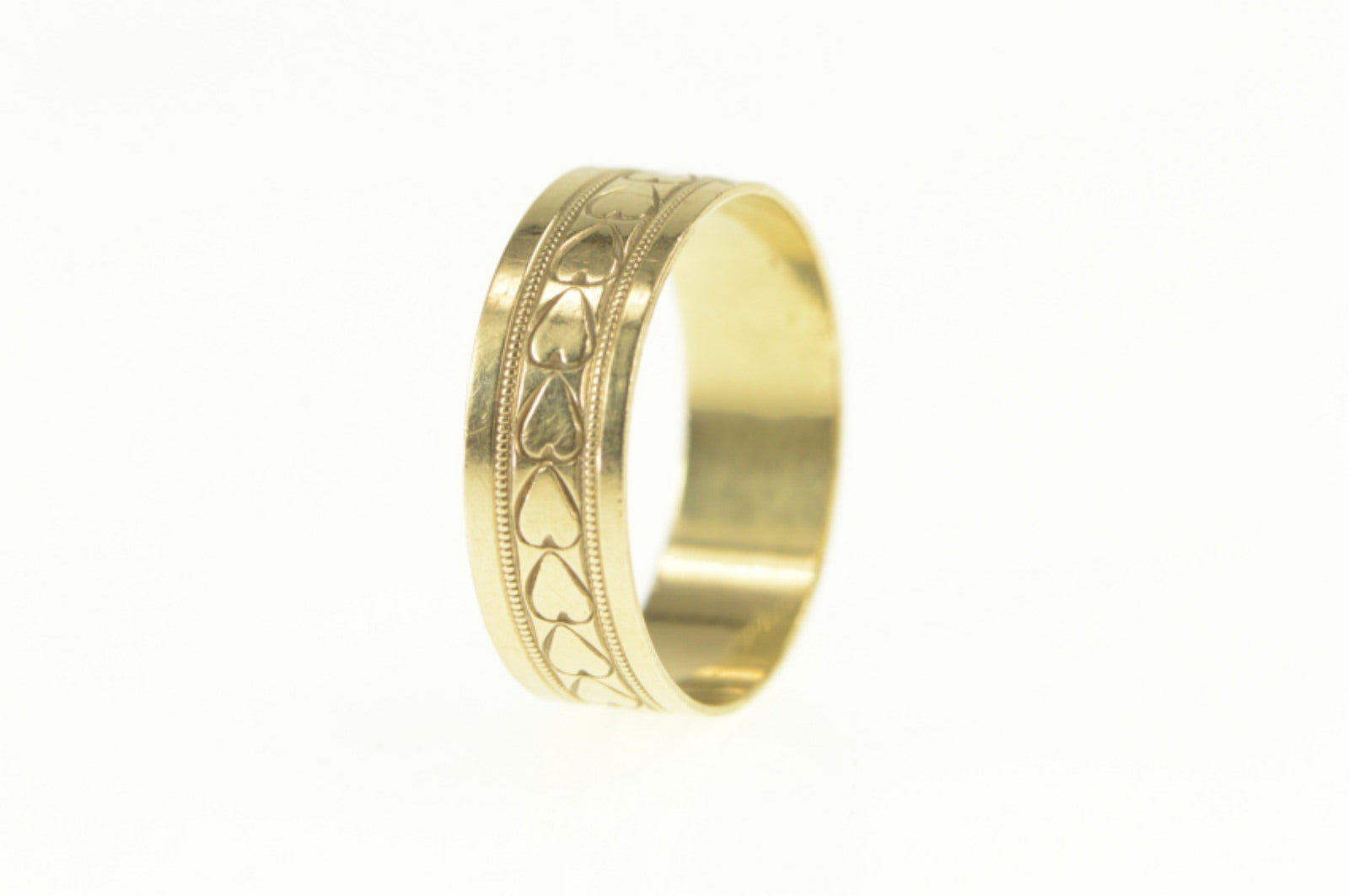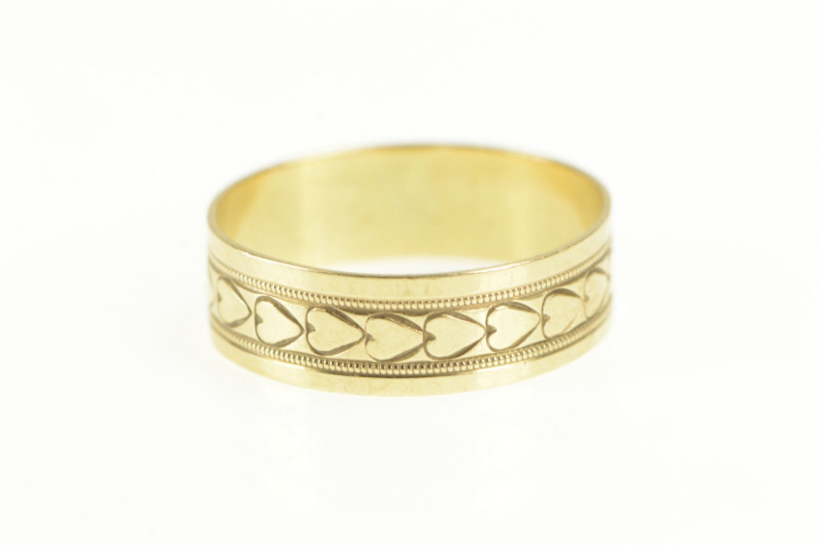 ·Item: 14K Art Deco Heart Pattern Ornate Band Ring Size 5.25 Yellow Gold