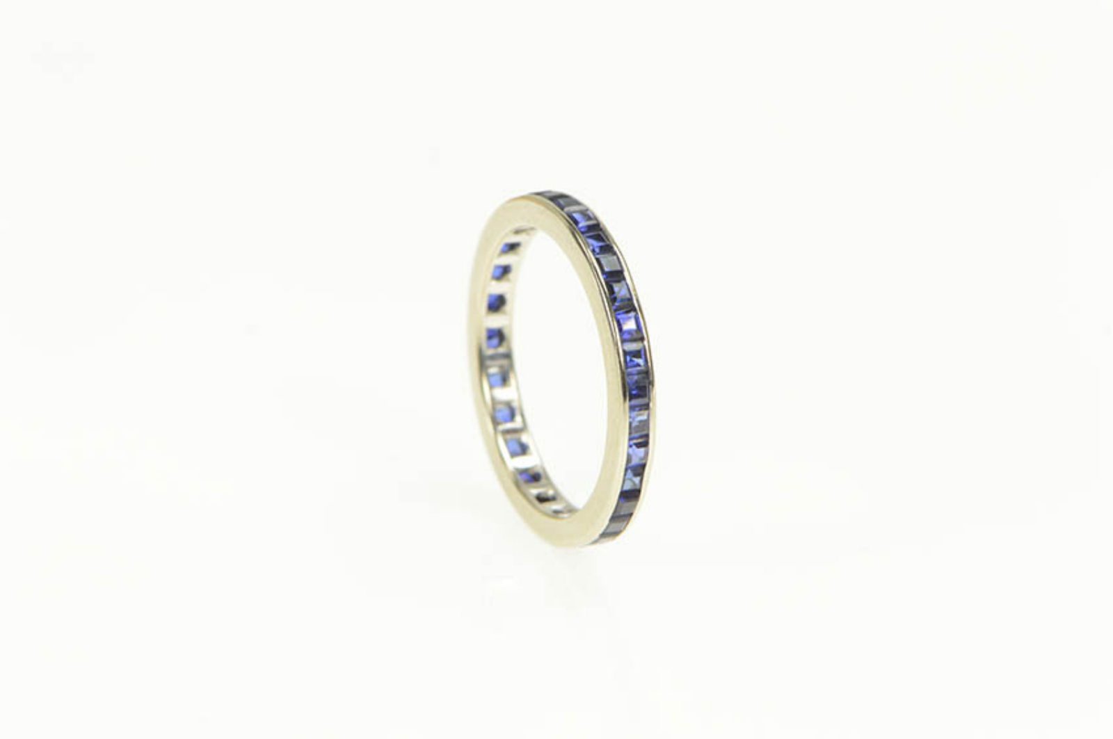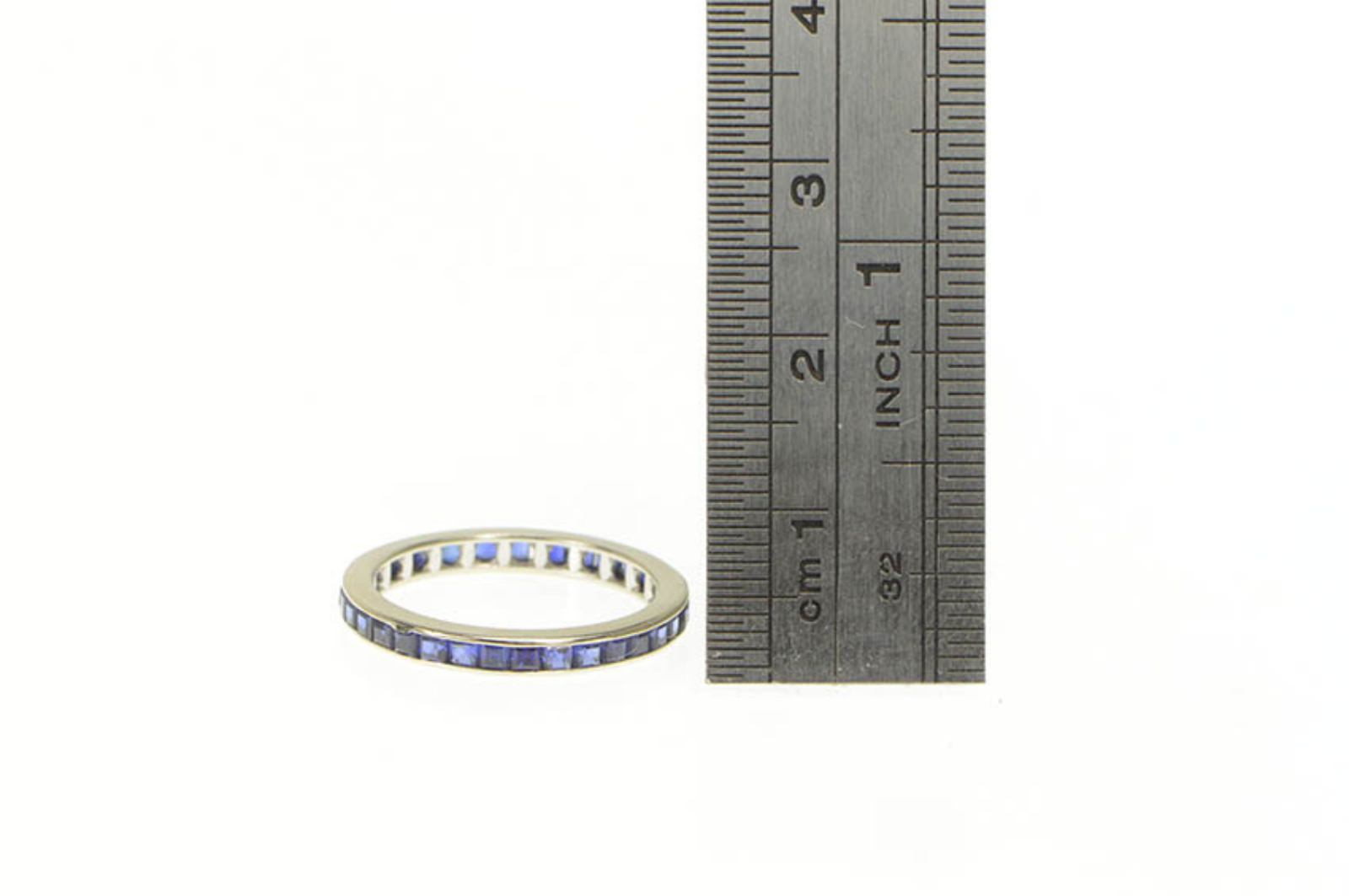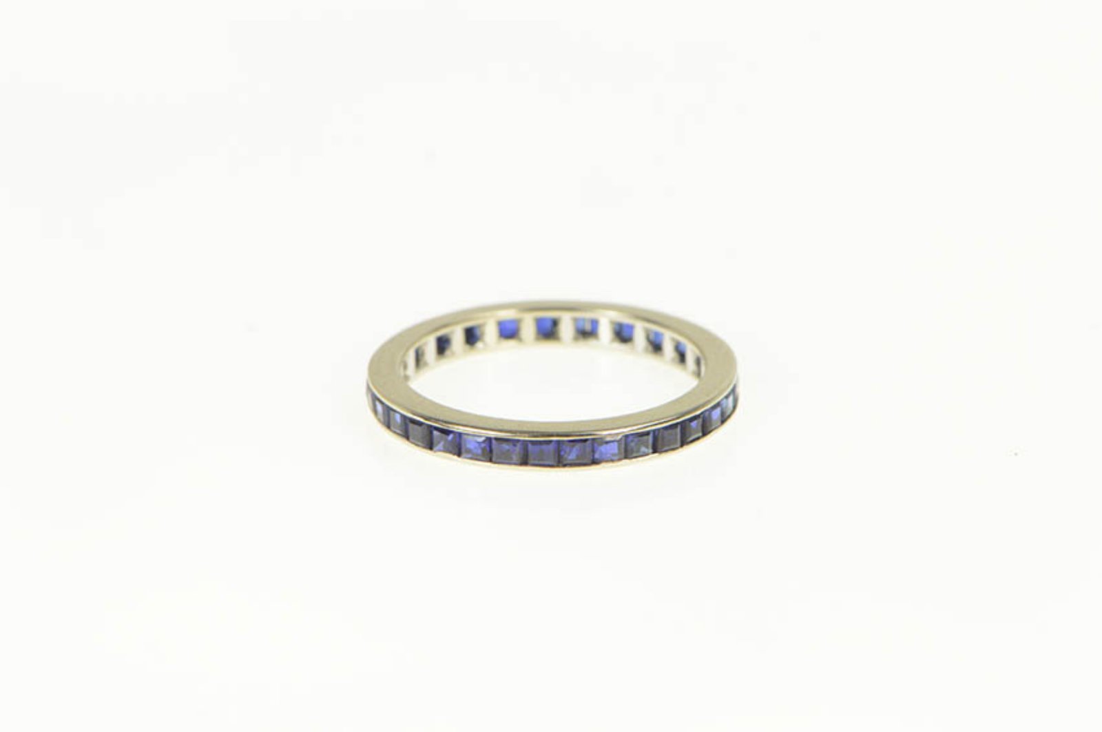 ·Item: 14K Art Deco Princess Syn. Sapphire Eternity Band Ring Size 6 White Gold