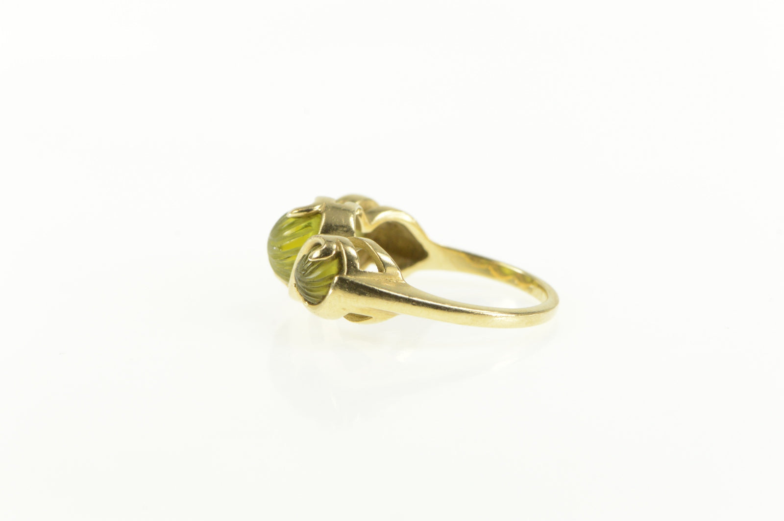 ·Item: 14K Carved Ornate Swirl Peridot Three Stone Ring Size 6.25 Yellow Gold