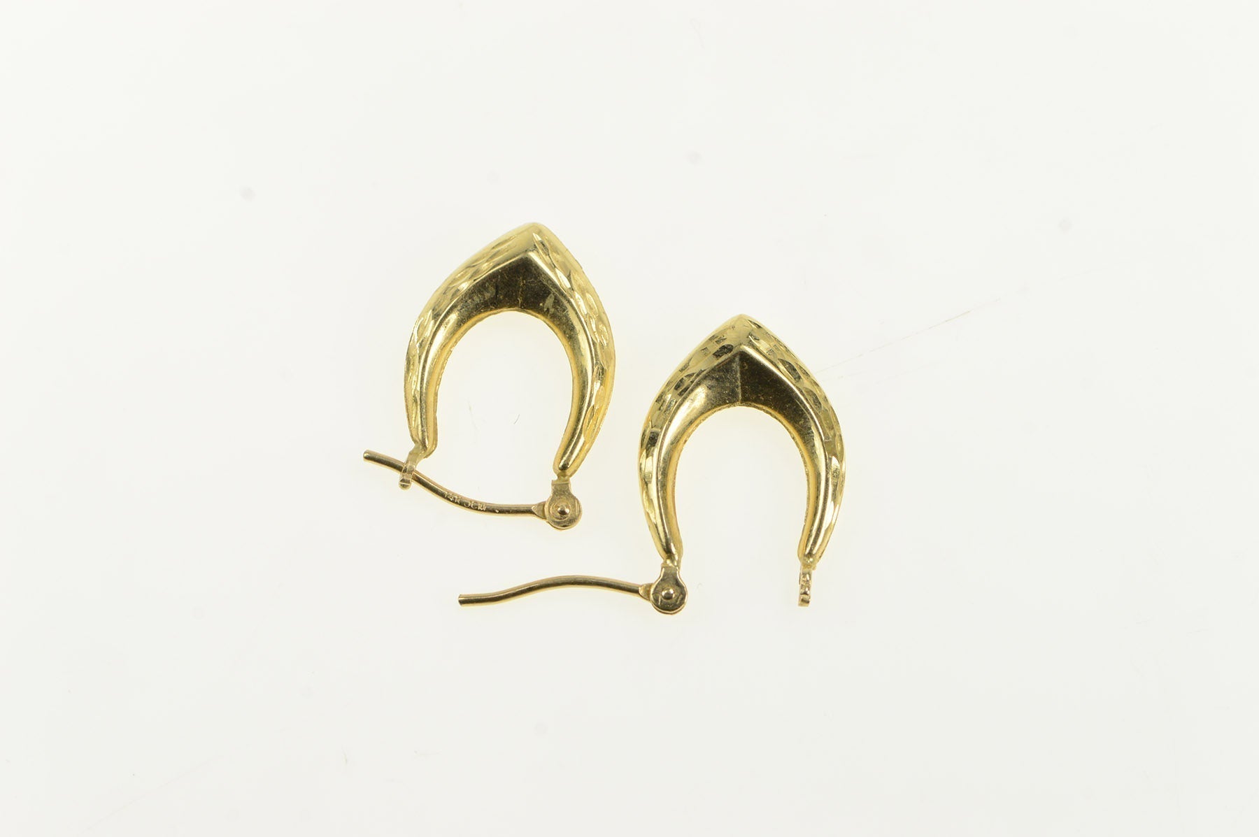 ·Item: 14K Chevron Diamond Cut Textured Oval Hoop Earrings Yellow Gold