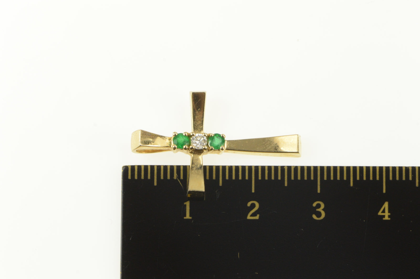 ·Item: 14K Classic Diamond Emerald Christian Faith Cross Pendant Yellow Gold