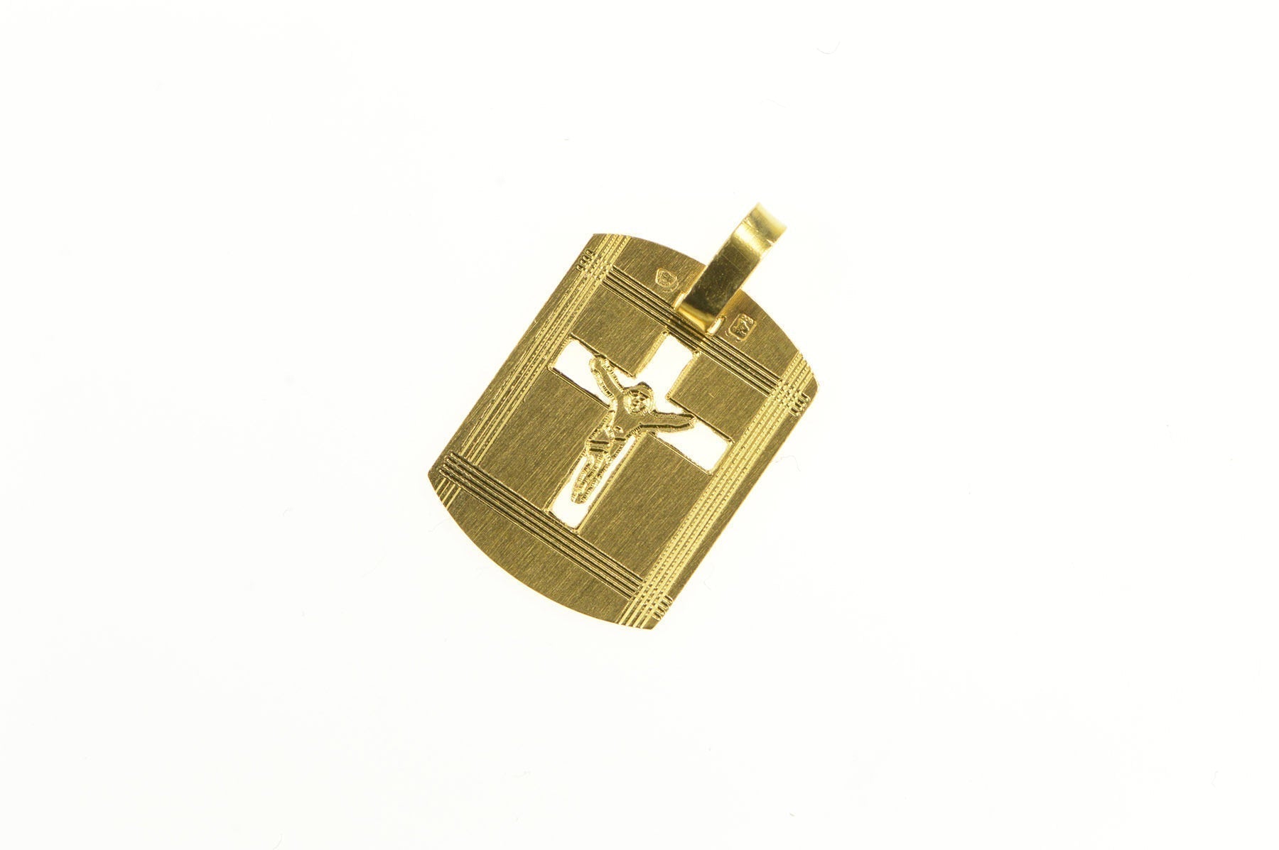 ·Item: 14K Cross Christian Faith Crucifix Dog Tag Charm/Pendant Yellow Gold