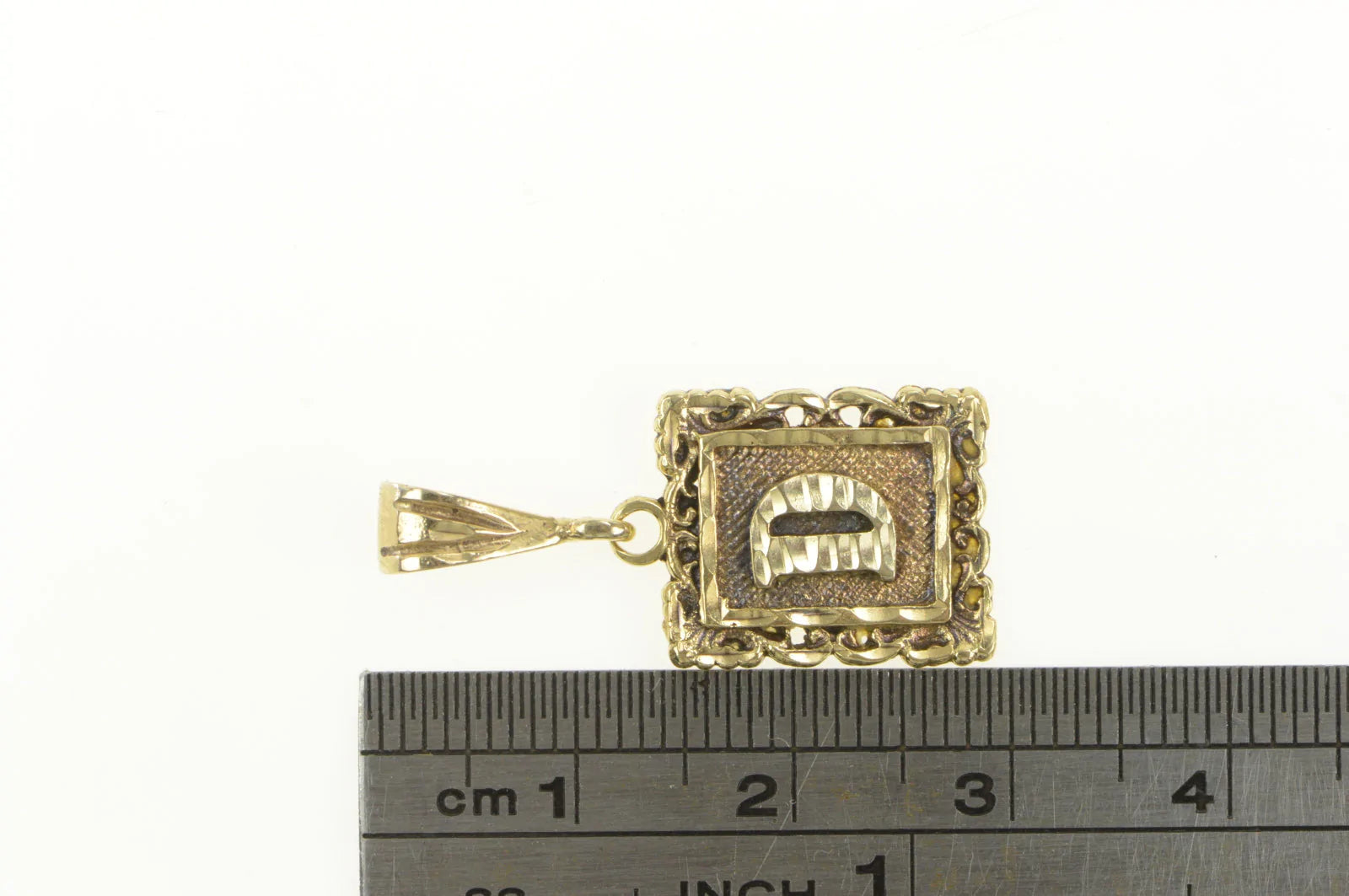 ·Item: 14K D Ornate Monogram Square Initial Letter Pendant Yellow Gold