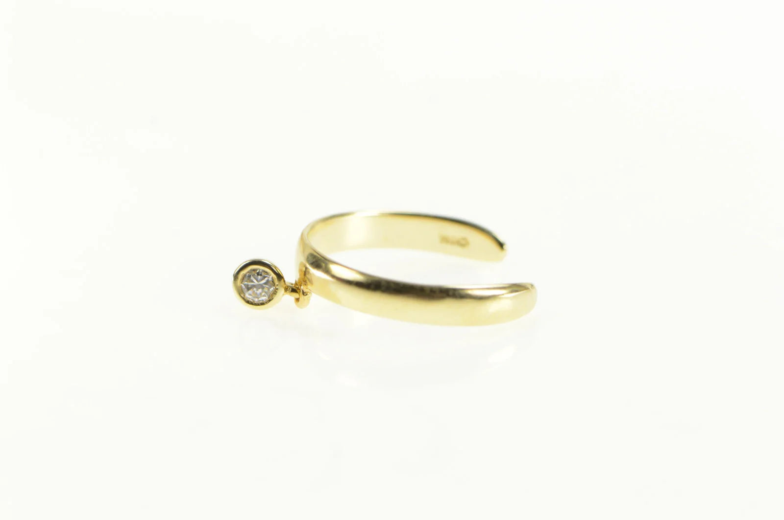 14K Dangle Charm Round CZ Adjustable Band Ring Yellow Gold