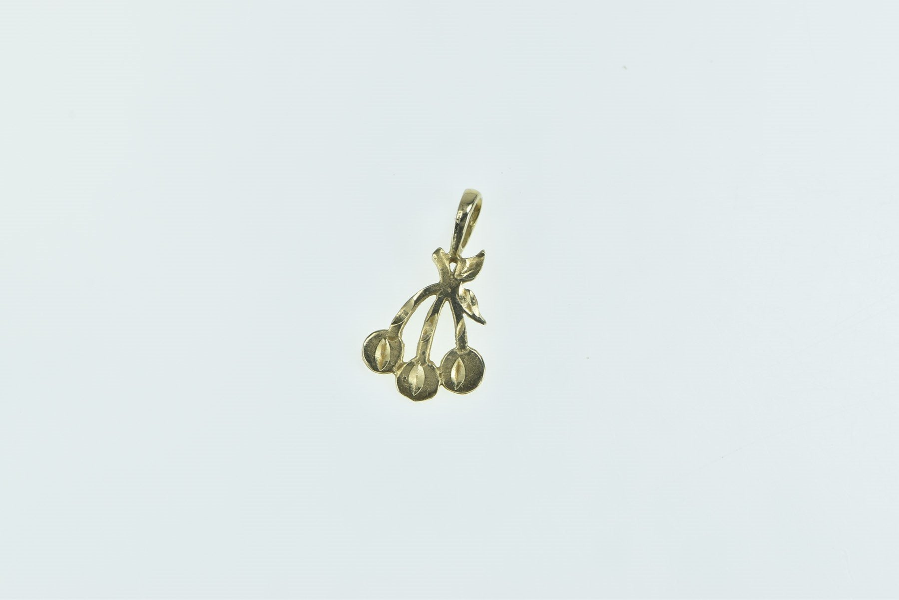 ·Item: 14K Diamond Cut Cherry Cluster Bunch Fruit Charm/Pendant Yellow Gold